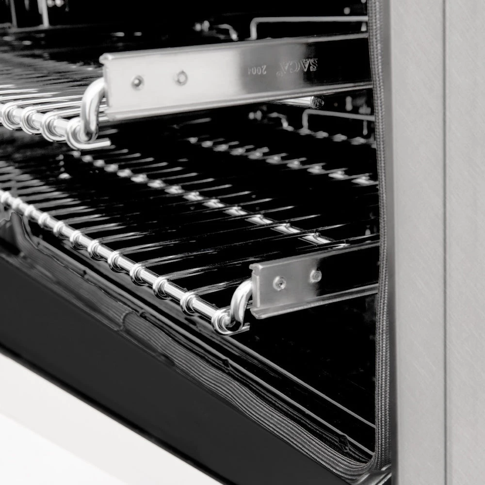 Luxury isn’t meant to be left desired—it’s meant to be attainable. The ZLINE 24 in. 2.8 cu. ft. Legacy Dual Fuel Range with 4 Burner Gas Cooktop and Electric Convection Oven in Satin Stainless Steel and White Matte Door (RAS-WM-24) pairs a powerful gas cooktop with 4 Italian-crafted burners, an electric convection oven, and a beautiful white matte door with a Landscape window design. With innovative features designed to enhance your kitchen’s capability, ZLINE Legacy Dual Fuel Ranges provide a professional culinary experience by pairing unmatched performance with timeless style.