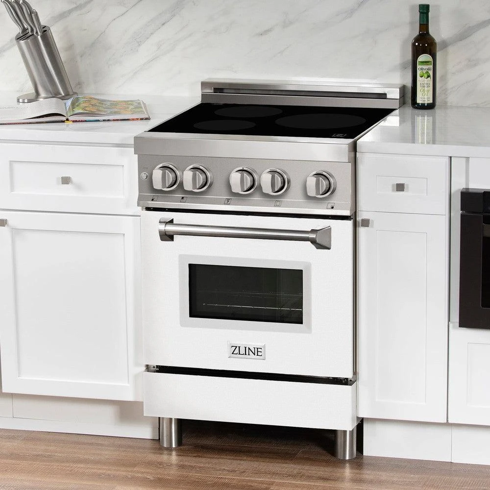 ZLINE 24 In. 2.8 Cu. Ft. Legacy Induction Range With 4 Element Cooktop And Electric Oven In Stainless Steel And White Matte Door (RAIND-WM-24)(Zline 24 Induction Range Stainless Steel White Matte Raind Wm 24)