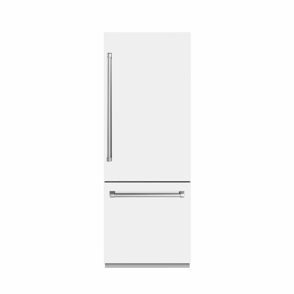 ZLINE 30 In. 16.1 Cu. Ft. Built-In Bottom Freezer Refrigerator With Water Dispenser And Ice Maker In White Matte With Graphite Gray Interior (GRBIV-WM-30)(Zline 30 Built In Refrigerator White Matte Graphite Gray Grbiv Wm 30)