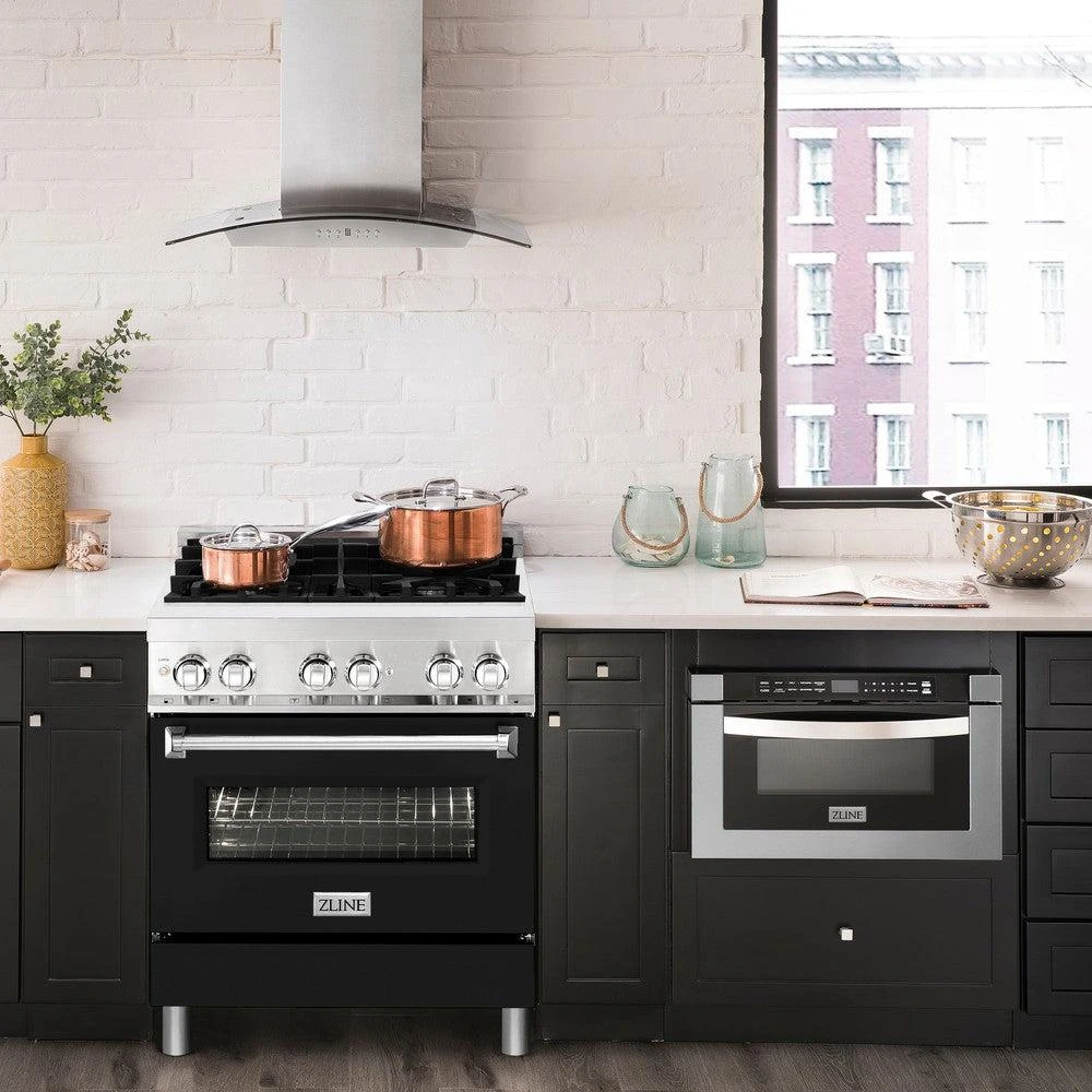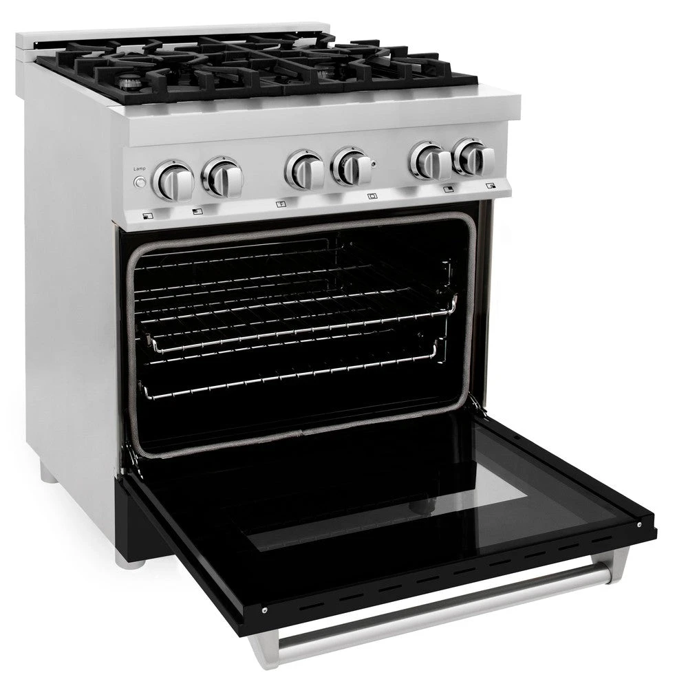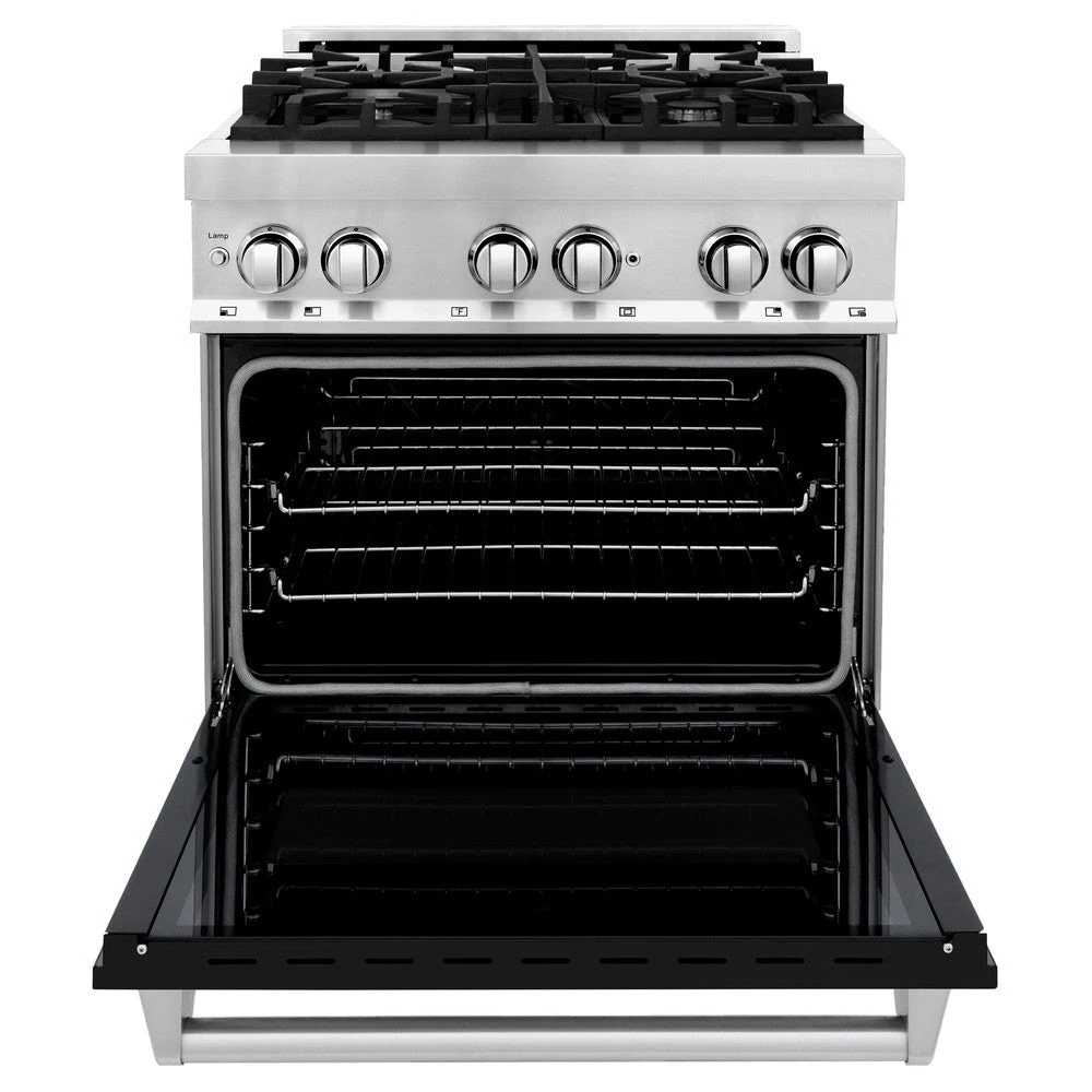 ZLINE 30 In. 4.0 Cu. Ft. Legacy Dual Fuel Range With 4 Burner Gas Cooktop And Electric Convection Oven In Stainless Steel And Black Matte Door (RA-BLM-30)(Zline 30 Legacy Dual Fuel Range Stainless Steel Black Matte Ra Blm 30)