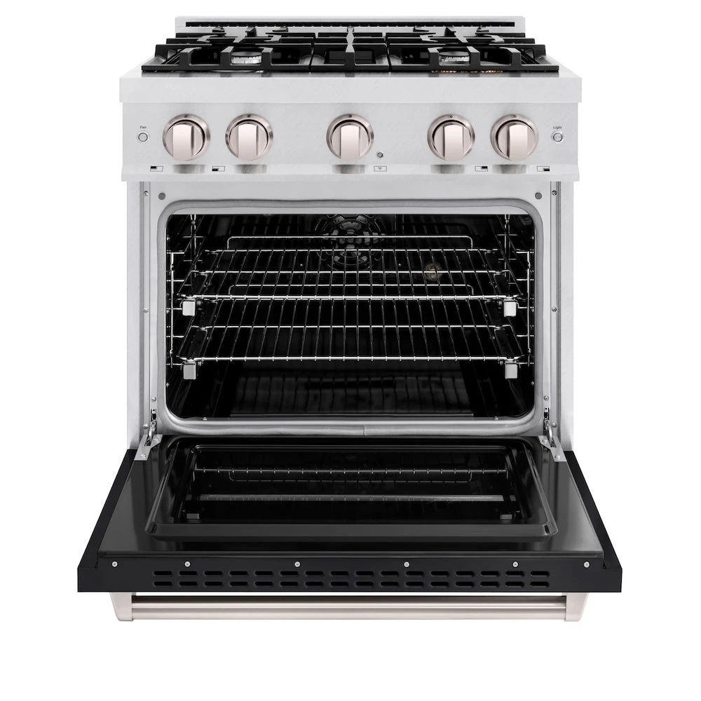 ZLINE 30 In. 4.2 Cu. Ft. Classic Dual Fuel Range With 4 Burner Gas Cooktop And Electric Convection Oven In Satin Stainless Steel With Black Matte Door (CDRS-BLM-30)(Zline 30 Classic Dual Fuel Range Satin Stainless Steel Black Matte Cdrs Blm 30)