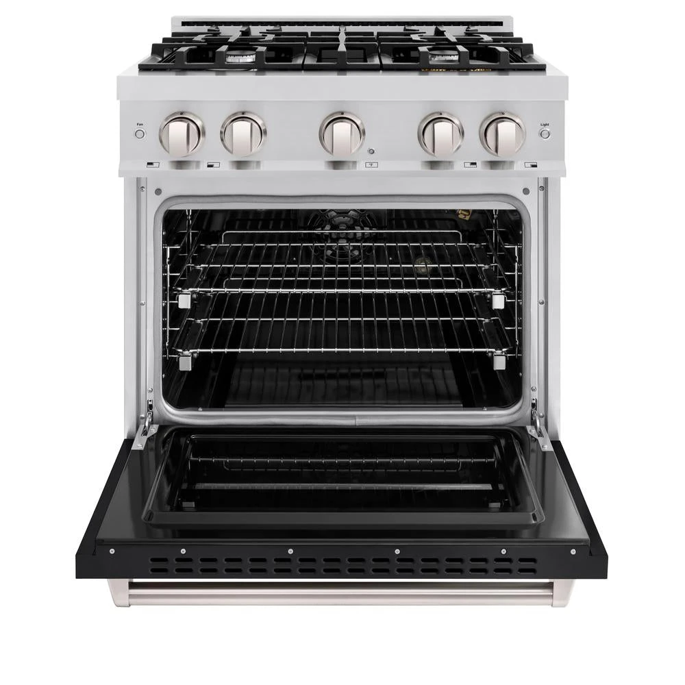 ZLINE 30 In. 4.2 Cu. Ft. Classic Gas Range With 4 Burner Cooktop And Convection Gas Oven In Stainless Steel With Black Matte Door (CGR-BLM-30)(Zline 30 Classic Gas Range Stainless Steel Black Matte Cgr Blm 30)