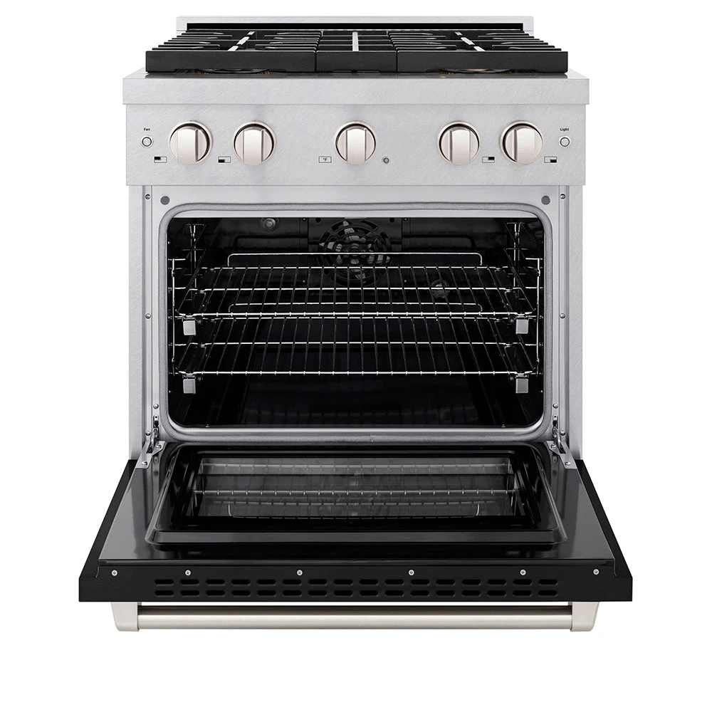 ZLINE 30 In. 4.2 Cu. Ft. Paramount Dual Fuel Range With 4 Burner DuoPro™ Cooktop And Electric Convection Oven In Satin Stainless Steel With Black Matte Door (PSDRS-BLM-30)(Zline 30 Paramount Dual Fuel Range Duopro Satin Stainless Steel Black Matte Psdrs Blm 30)