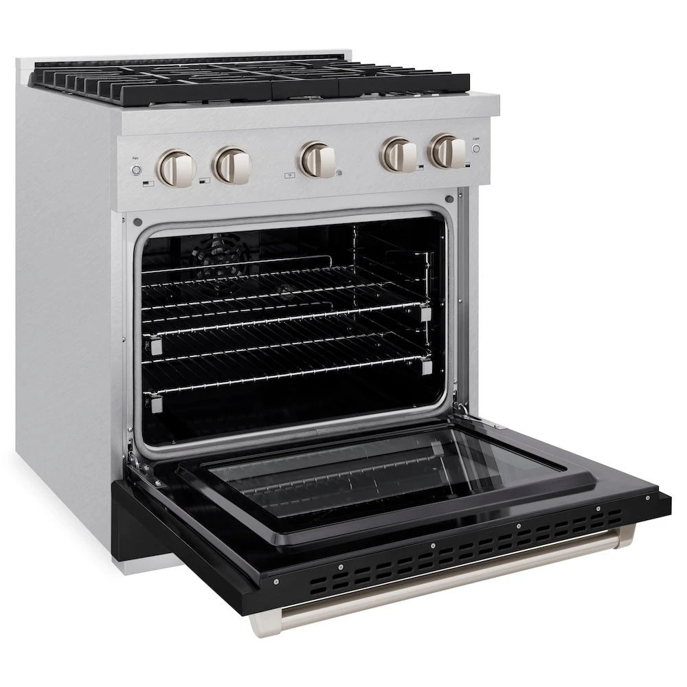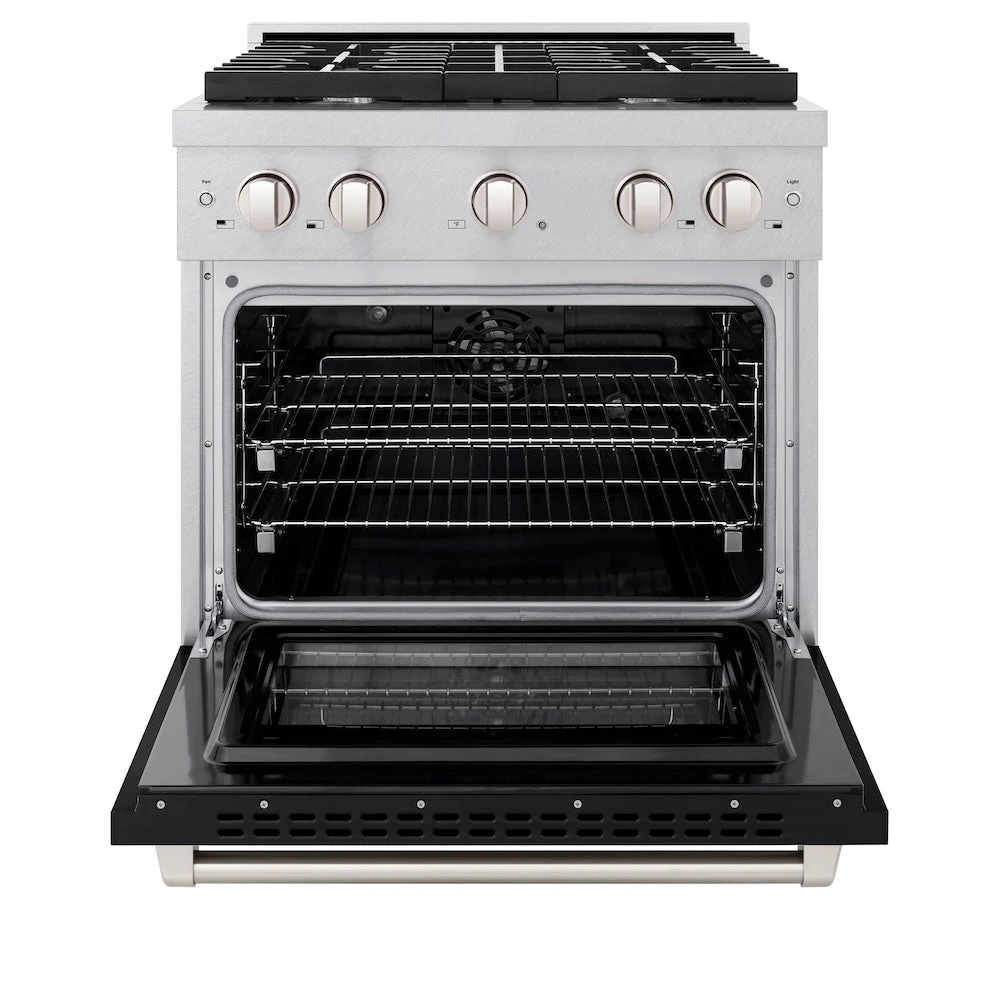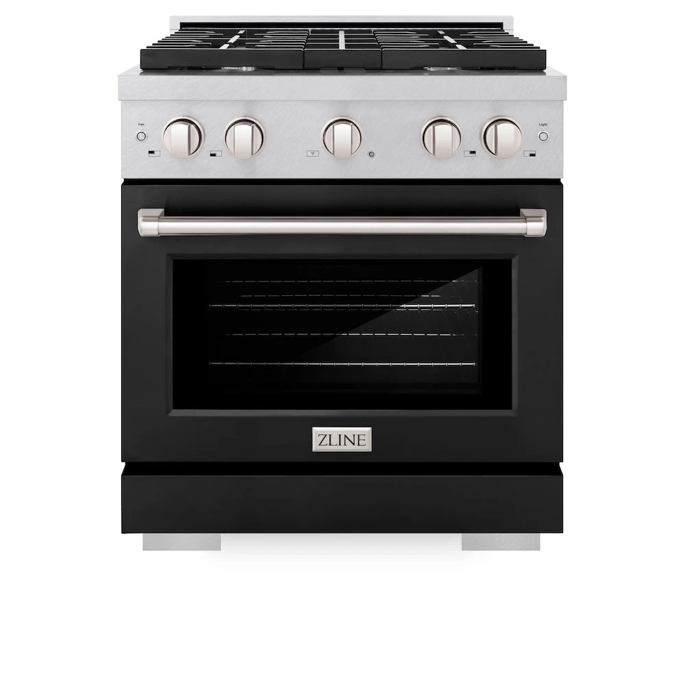 ZLINE 30 In. 4.2 Cu. Ft. Paramount Dual Fuel Range With 4 Burner Gas Cooktop And Electric Convection Oven In Satin Stainless Steel With Black Matte Door (SDRS-BLM-30)(Zline 30 Paramount Dual Fuel Range Satin Stainless Steel Black Matte Sdrs Blm 30)