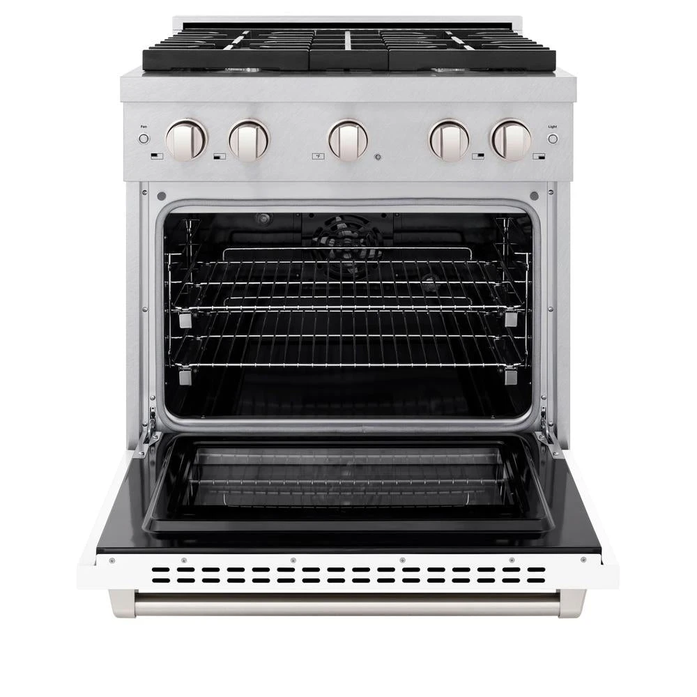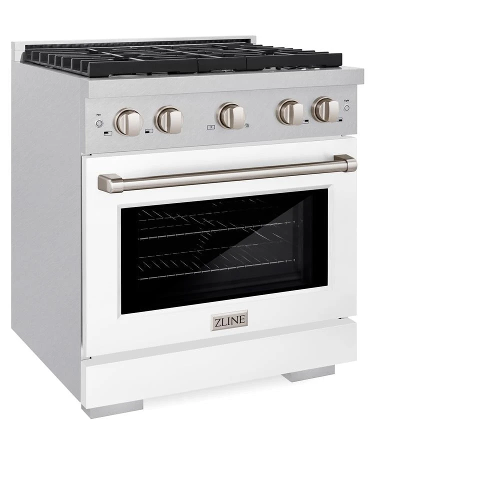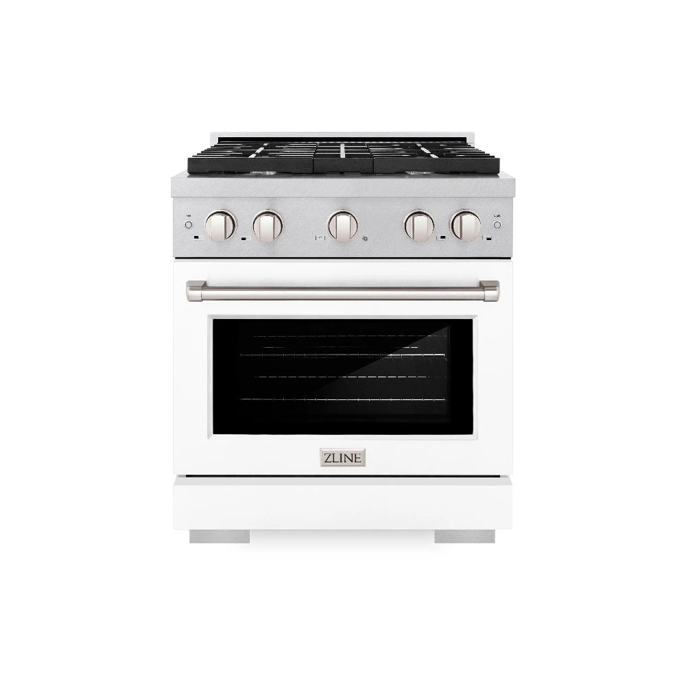 ZLINE 30 In. 4.2 Cu. Ft. Paramount Dual Fuel Range With 4 Burner Gas Cooktop And Electric Convection Oven In Satin Stainless Steel With White Matte Door (SDRS-WM-30)(Zline 30 Paramount Dual Fuel Range Satin Stainless Steel White Matte Sdrs Wm 30)