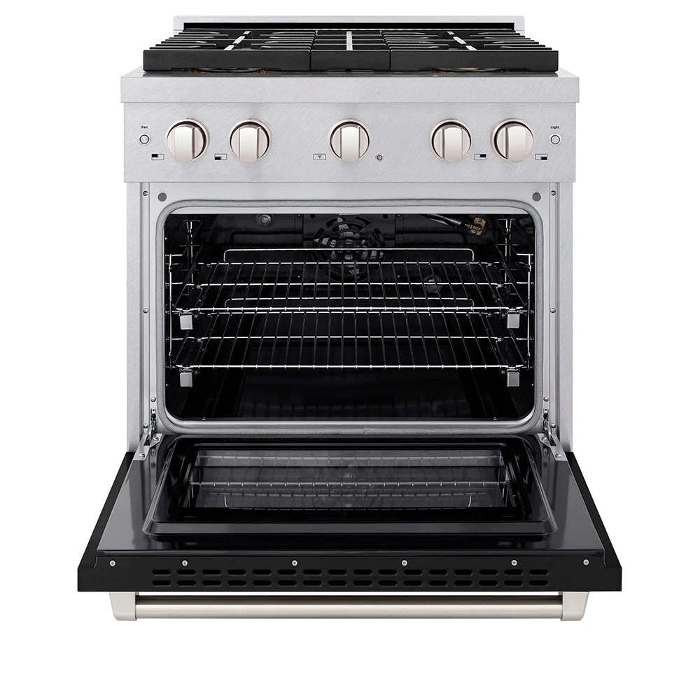 ZLINE 30 In. 4.2 Cu. Ft. Paramount Gas Range With 4 Burner DuoPro™ Cooktop And Convection Gas Oven In Satin Stainless Steel With Black Matte Door (PSGRS-BLM-30)(Zline 30 Paramount Gas Range Duopro Satin Stainless Steel Black Matte Psgrs Blm 30)