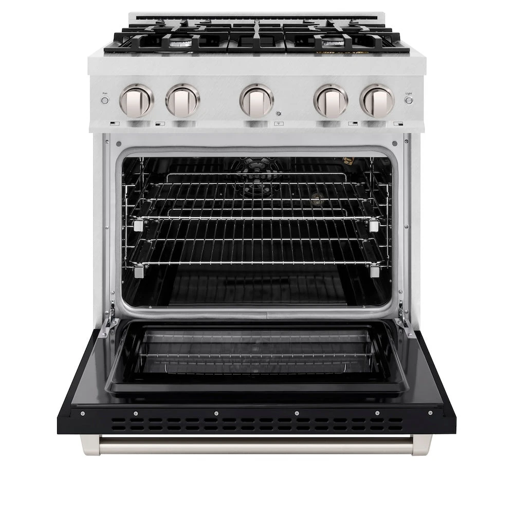 ZLINE 30 In. 4.2 Cu. Ft. Select Gas Range With 4 Burner Cooktop And Convection Gas Oven In Satin Stainless Steel With Black Matte Door (HGRS-BLM-30)(Zline 30 Select Gas Range Satin Stainless Steel Black Matte Hgrs Blm 30)