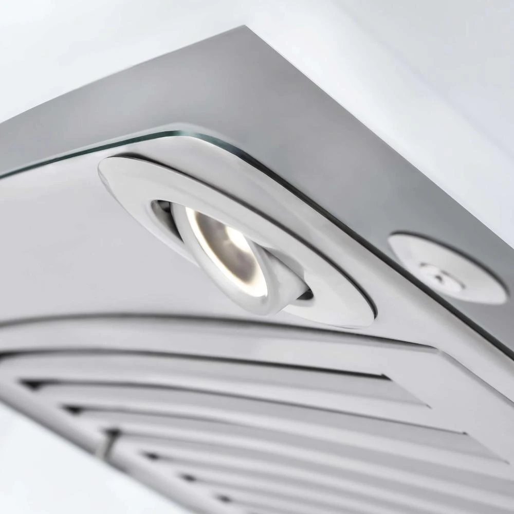 The ZLINE KN-30 is a 30 in. professional wall mount stainless steel range hood with a modern design and built-to-last quality, making it a great addition to any kitchen. This hood’s high-performance, 400 CFM 4-speed motor will provide all the power you need to quietly and efficiently ventilate your stove while cooking. With its classic 430 grade stainless steel, this range hood contains rust, temperature, and corrosion-resistant properties to ensure a durable vent hood that will last for years to come. Enjoy modern features, including built-in LED lighting for an illuminated culinary experience and dishwasher-safe stainless steel baffle filters for easy clean-up. This wall mount range hood has a convertible vent, so you can have a luxury range hood whether you need a ducted or ductless option. Enjoy easy installation and an easy recirculating conversion process. ZLINE Kitchen and Bath stands by all products with its manufacturer parts warranty. The KN-30 ships next business day when in stock.