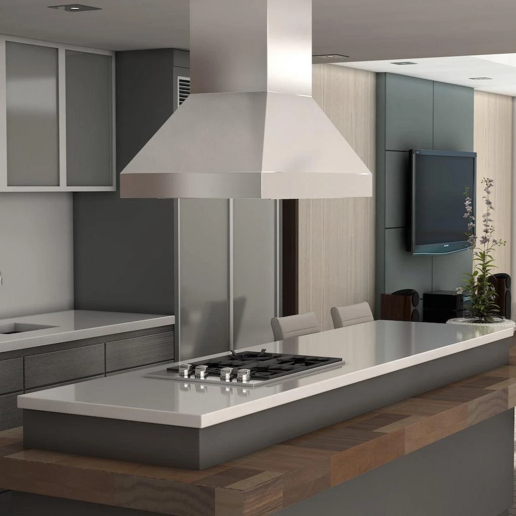 Experience ZLINE Attainable Luxury® with industry-leading kitchen and bath products that provide an elevated luxury experience, all designed in Lake Tahoe, USA. The ZLINE 597i-30 is a 30 in. professional island stainless steel range hood with a modern design and built-to-last quality, making it a great addition to any kitchen. This hood’s high-performance, 500 CFM 4-speed motor will provide all the power you need to quietly and efficiently ventilate your stove while cooking. With its classic 430 grade stainless steel, this range hood contains rust, temperature, and corrosion-resistant properties to ensure a durable vent hood that will last for years to come. Enjoy modern features, including built-in LED lighting for an illuminated culinary experience and dishwasher-safe stainless steel baffle filters for easy clean-up. This island range hood has a convertible vent, so you can have a luxury range hood whether you need a ducted or ductless option. Enjoy easy installation and an easy recirculating conversion process. ZLINE Kitchen and Bath stands by all products with its manufacturer parts warranty. The 597i-30 ships next business day when in stock.