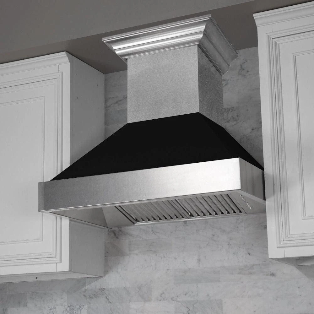 ZLINE 30 In. Ducted Satin Stainless Steel Wall Mount Range Hood With Black Matte Shell (8654BLM-30)(Zline 30 Wall Mount Range Hood Satin Stainless Steel Black Matte 8654blm 30)