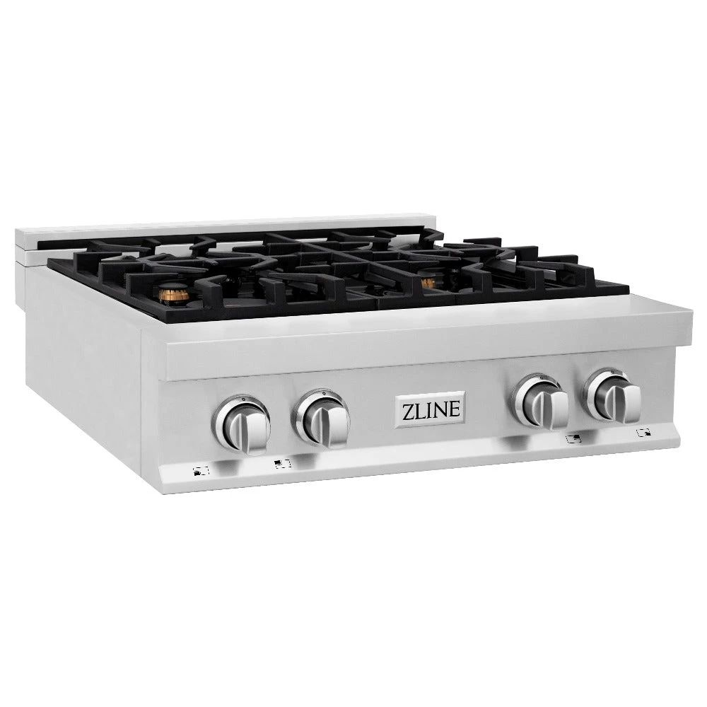 ZLINE 30 In. Legacy Gas Rangetop With 4 Brass Burners And Porcelain Cooktop In Stainless Steel (RT-BR-30)(Zline 30 Legacy Gas Rangetop Stainless Steel Brass Burners Rt Br 30)