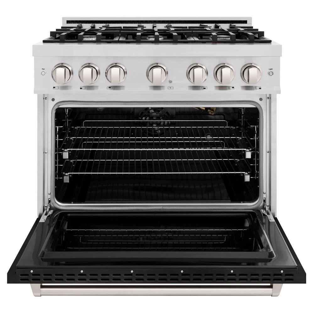 ZLINE 36 In. 5.2 Cu. Ft. Classic Gas Range With 6 Burner Cooktop And Convection Gas Oven In Stainless Steel With Black Matte Door (CGR-BLM-36)(Zline 36 Classic Gas Range Stainless Steel Black Matte Cgr Blm 36)
