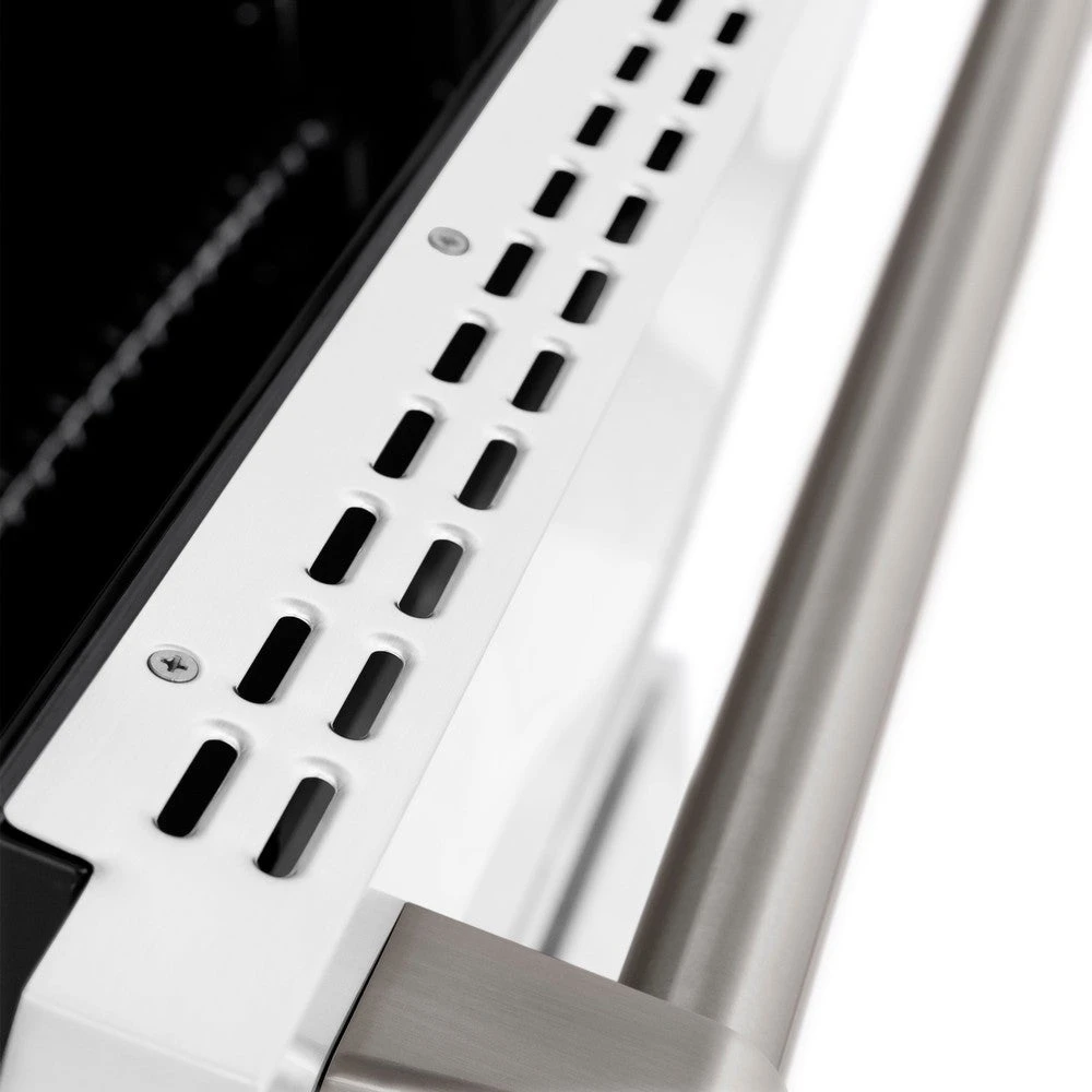 Luxury isn’t meant to be desired – it’s meant to be attainable. The ZLINE 36 in. 5.2 cu. ft. Paramount Dual Fuel Range with 6 Burner Gas Cooktop and Electric Convection Oven in Stainless Steel with White Matte Door (SDR-WM-36) combines the versatility of a gas cooktop with 6 Italian-made auto-reignition burners, an electric convection oven with digital thermostat technology, enhanced cast iron grates, and a beautiful white matte door with a Horizon window design allowing you to master every meal. With a modern, timeless style and refined functionality, ZLINE Paramount Dual Fuel Ranges are masterfully crafted to deliver an elevated culinary experience.