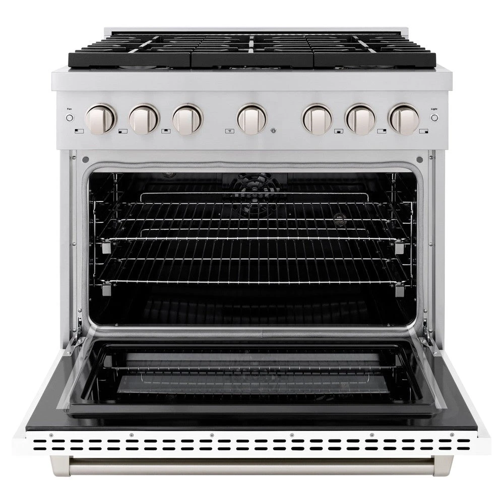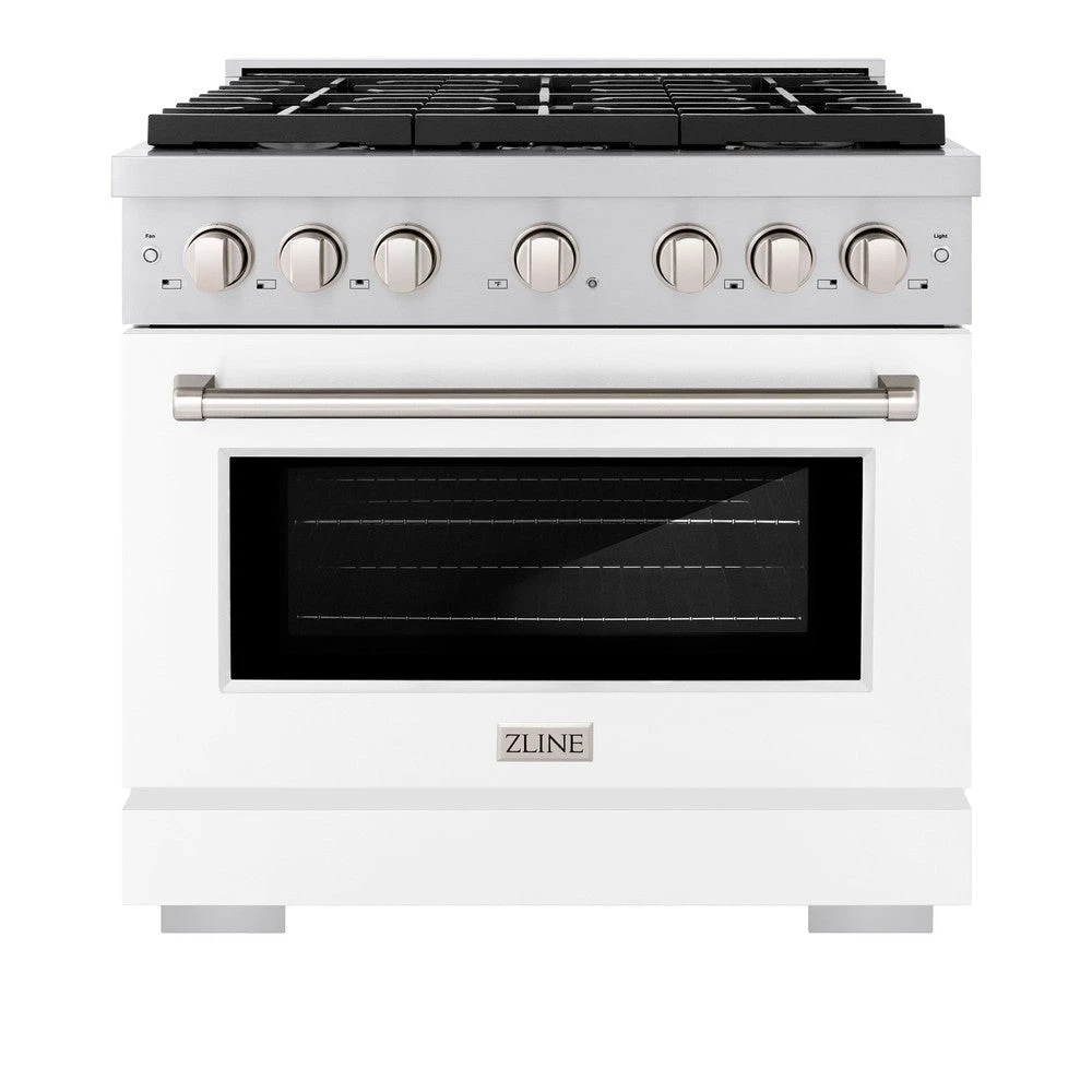 ZLINE 36 In. 5.2 Cu. Ft. Paramount Dual Fuel Range With 6 Burner Gas Cooktop And Electric Convection Oven In Stainless Steel With White Matte Door (SDR-WM-36)(Zline 36 Paramount Dual Fuel Range Stainless Steel White Matte Sdr Wm 36)