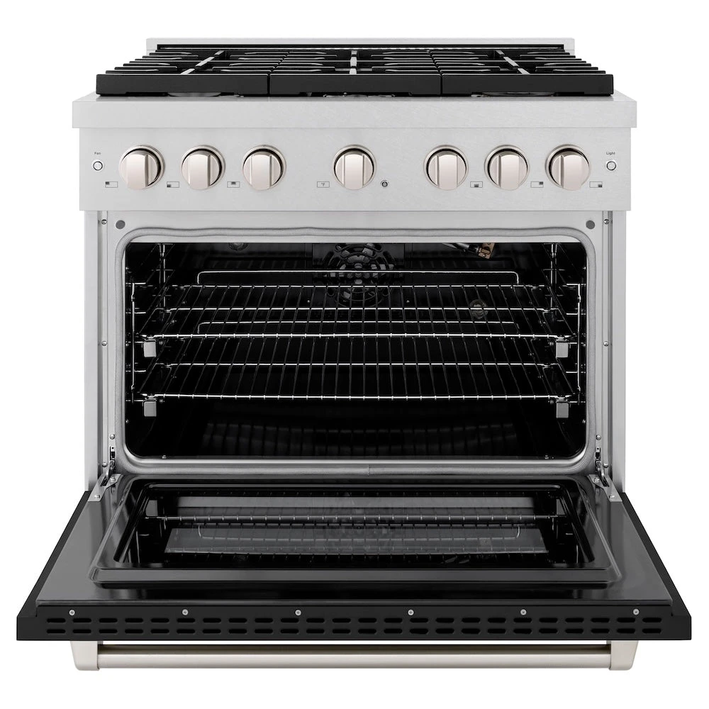 ZLINE 36 In. 5.2 Cu. Ft. Paramount Gas Range With 6 Burner Cooktop And Convection Gas Oven In Satin Stainless Steel With Black Matte Door (SGRS-BLM-36)(Zline 36 Paramount Gas Range Satin Stainless Steel Black Matte Sgrs Blm 36)