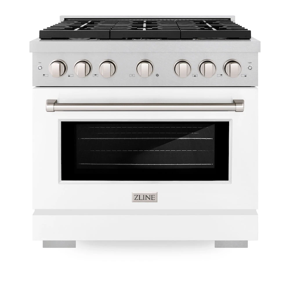ZLINE 36 In. 5.2 Cu. Ft. Paramount Gas Range With 6 Burner Cooktop And Convection Gas Oven In Satin Stainless Steel With White Matte Door (SGRS-WM-36)(Zline 36 Paramount Gas Range Satin Stainless Steel White Matte Sgrs Wm 36)