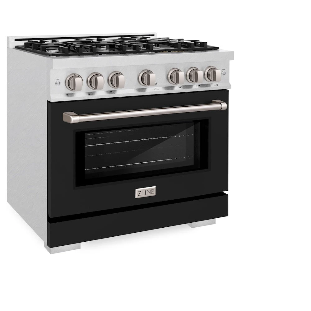 ZLINE 36 In. 5.2 Cu. Ft. Select Dual Fuel Range With 6 Burner Gas Cooktop And Electric Convection Oven In Satin Stainless Steel With Black Matte Door (HDRS-BLM-36)(Zline 36 Select Dual Fuel Range Satin Stainless Steel Black Matte Hdrs Blm 36)