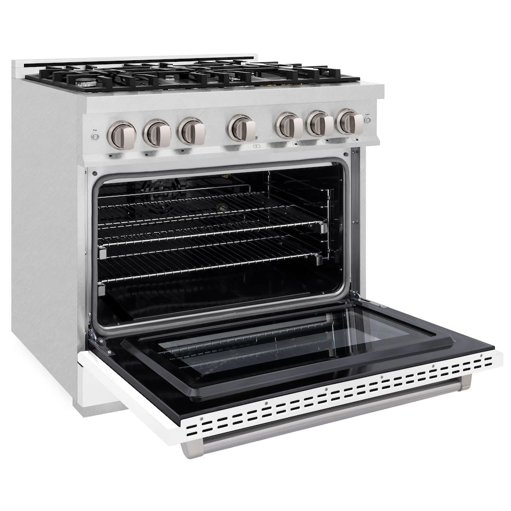 ZLINE 36 In. 5.2 Cu. Ft. Select Gas Range With 6 Burner Cooktop And Convection Gas Oven In Satin Stainless Steel With White Matte Door (HGRS-WM-36)(Zline 36 Select Gas Range Satin Stainless Steel White Matte Hgrs Wm 36)