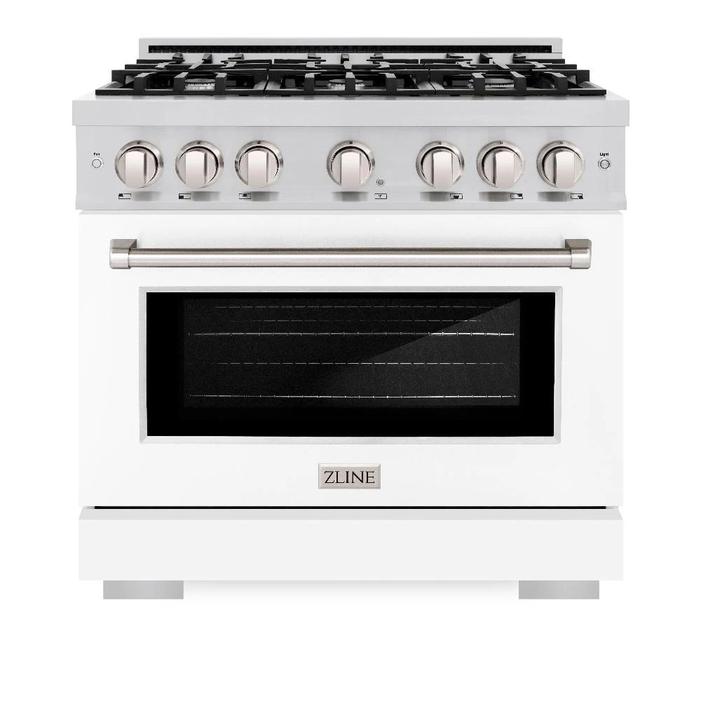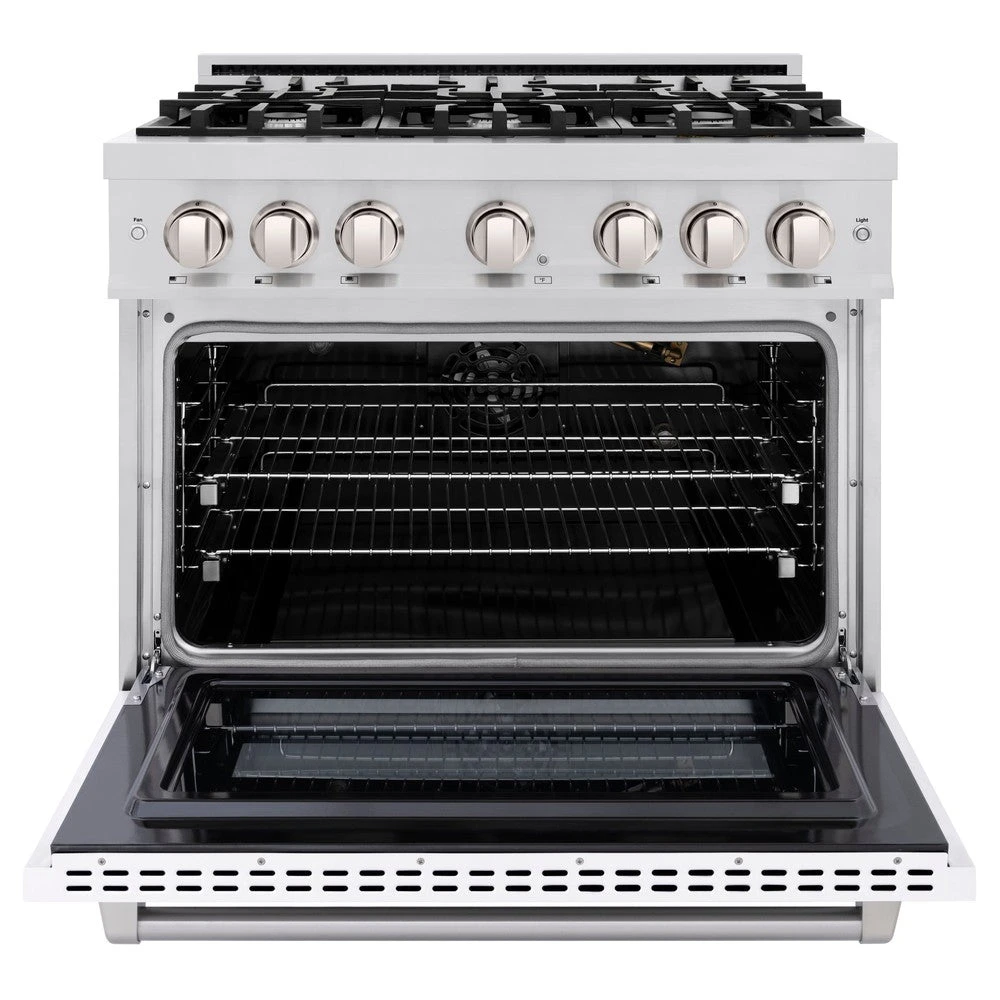 ZLINE 36 In. 5.2 Cu. Ft. Select Gas Range With 6 Burner Cooktop And Convection Gas Oven In Stainless Steel With White Matte Door (HGR-WM-36)(Zline 36 Select Gas Range Stainless Steel White Matte Hgr Wm 36)
