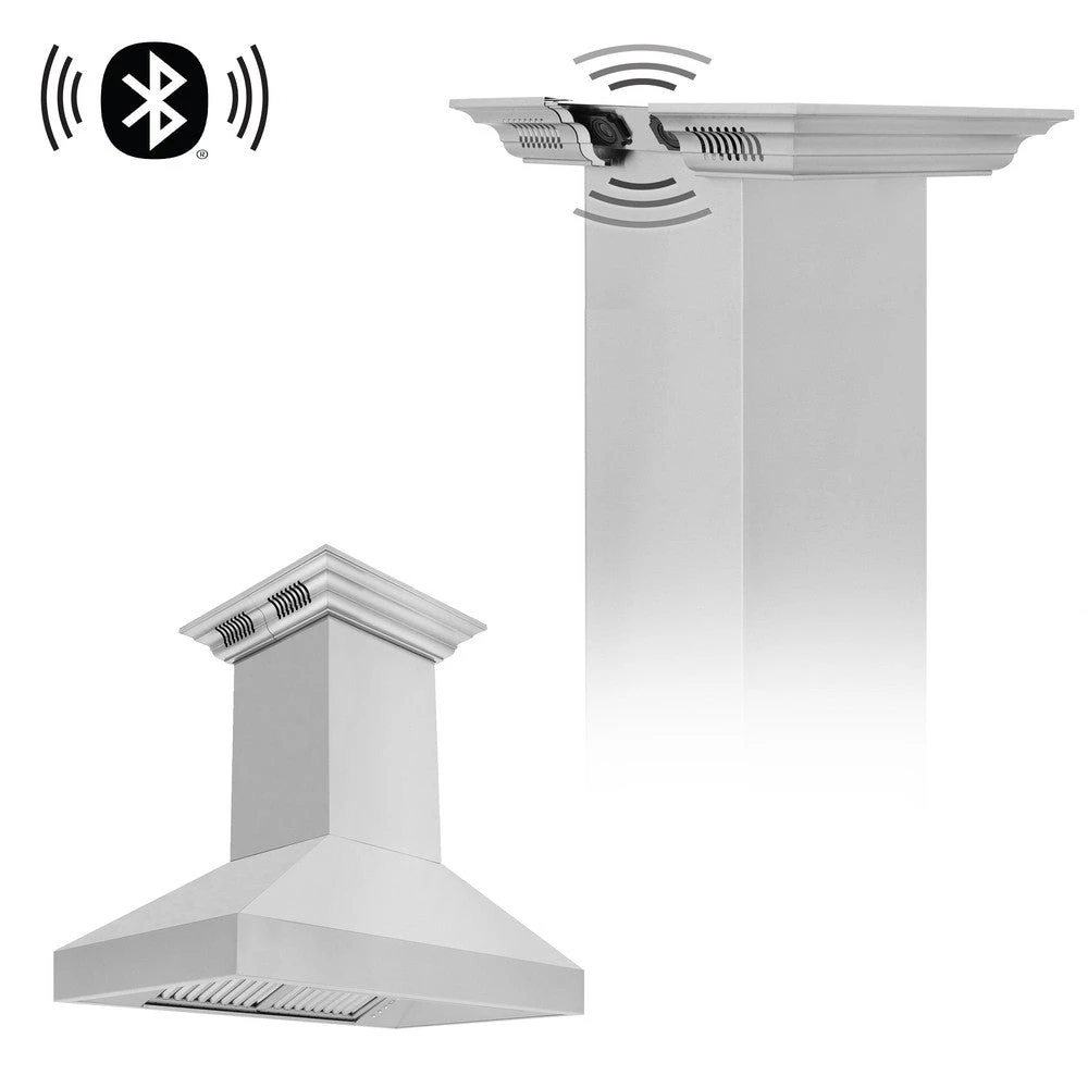 ZLINE 36 In. CrownSound™ Ducted Vent Island Mount Range Hood In Stainless Steel With Built-in Bluetooth Speakers (597iCRN-BT-36)(Zline 36 Island Mount Range Hood Stainless Steel Crownsound 597icrn Bt 36)