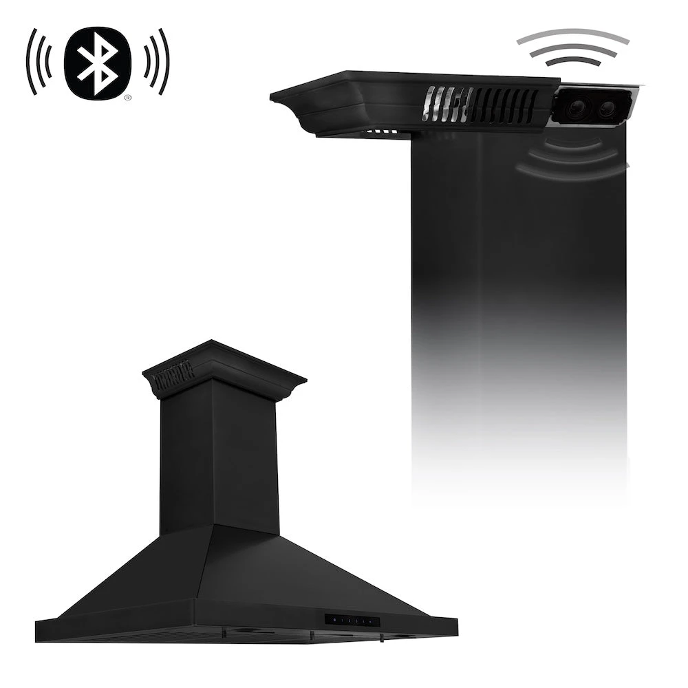 ZLINE 36 In. CrownSound™ Ducted Vent Wall Mount Range Hood In Black Stainless Steel With Built-in Bluetooth Speakers (BSKBNCRN-BT-36)(Zline 36 Wall Mount Range Hood Black Stainless Steel Crownsound Bskbncrn Bt 36)