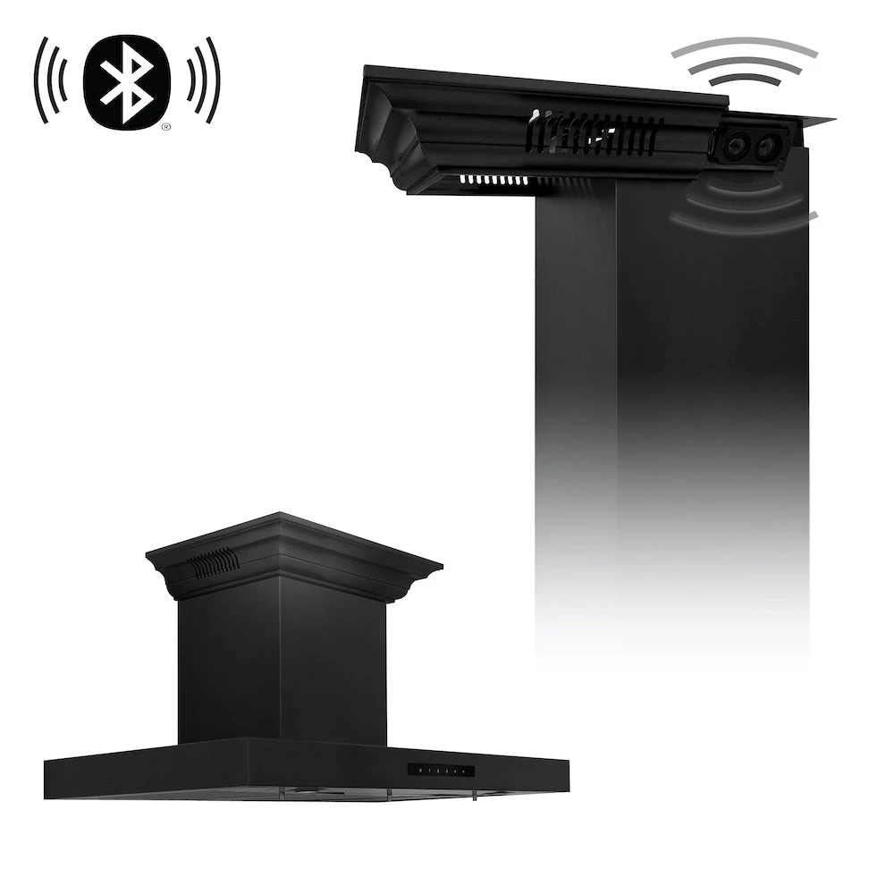 ZLINE 36 In. CrownSound™ Ducted Vent Wall Mount Range Hood In Black Stainless Steel With Built-in Bluetooth Speakers (BSKENCRN-BT-36)(Zline 36 Wall Mount Range Hood Black Stainless Steel Crownsound Bskencrn Bt 36)
