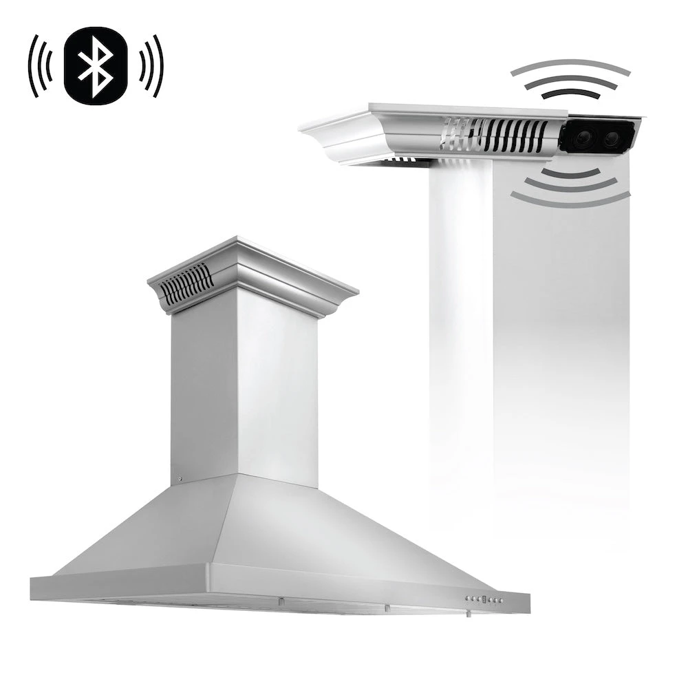 ZLINE 36 In. CrownSound™ Ducted Vent Wall Mount Range Hood In Stainless Steel With Built-in Bluetooth Speakers (KBCRN-BT-36)(Zline 36 Wall Mount Range Hood Stainless Steel Crownsound Kbcrn Bt 36)