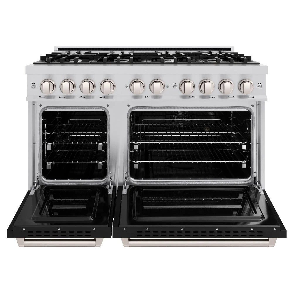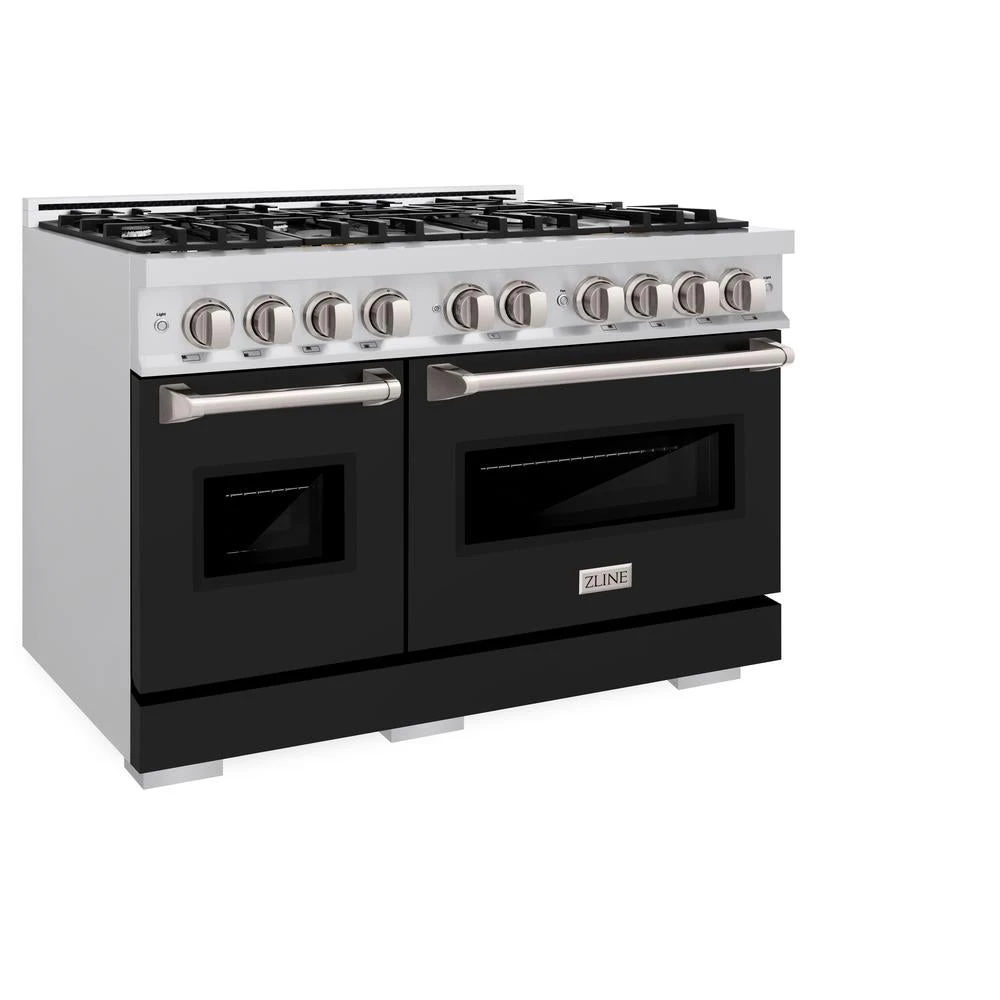 ZLINE 48 In. 6.7 Cu. Ft. Classic Double Oven Dual Fuel Range With 8 Burner Gas Cooktop In Stainless Steel With Black Matte Doors (CDR-BLM-48)(Zline 48 Classic Dual Fuel Range Stainless Steel Black Matte Cdr Blm 48)