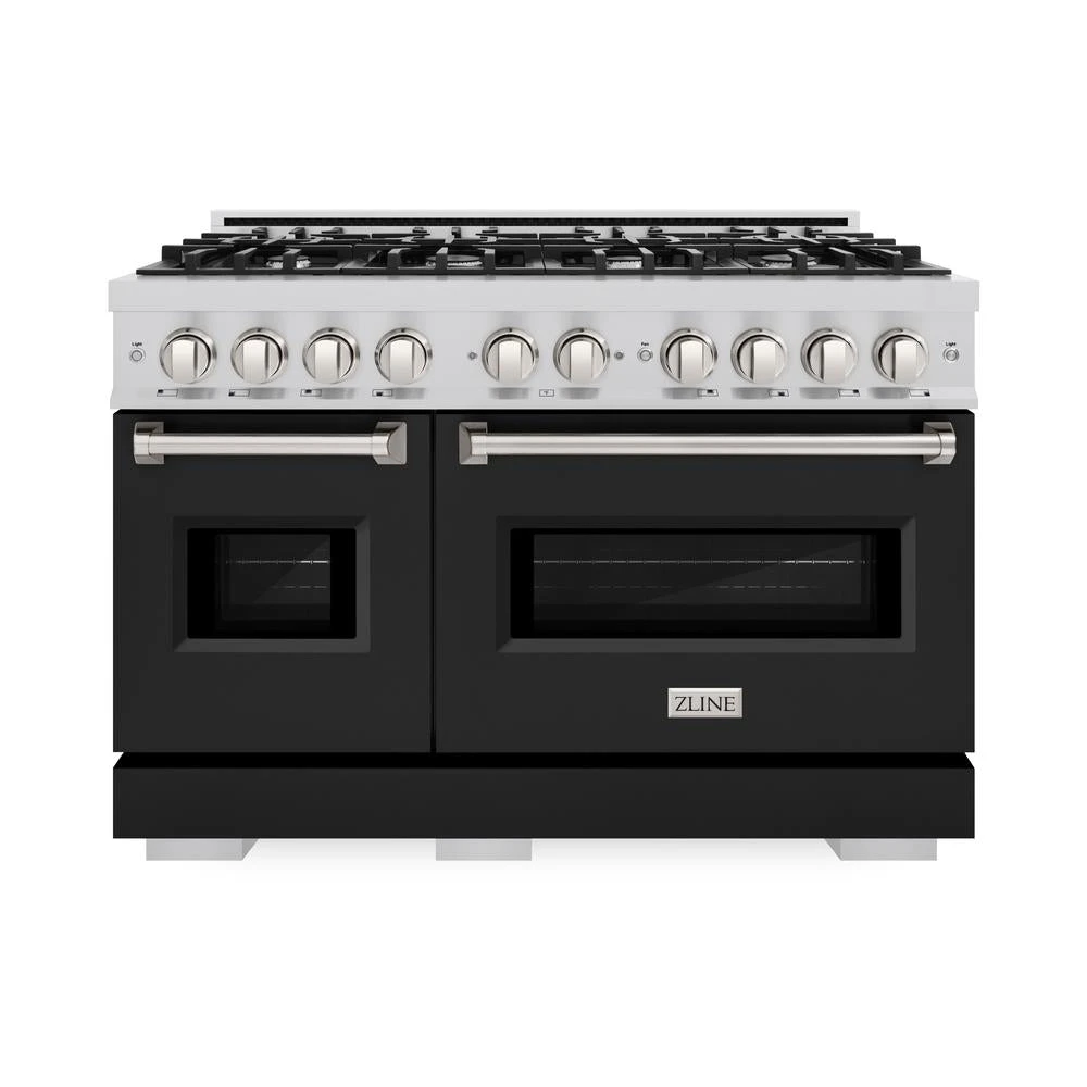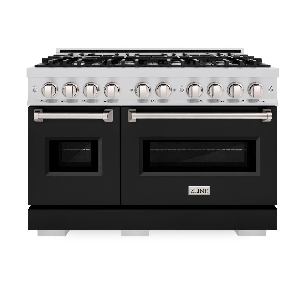 ZLINE 48 In. 6.7 Cu. Ft. Classic Double Oven Gas Range With 8 Burner Cooktop In Stainless Steel With Black Matte Doors (CGR-BLM-48)(Zline 48 Classic Gas Range Stainless Steel Black Matte Cgr Blm 48)