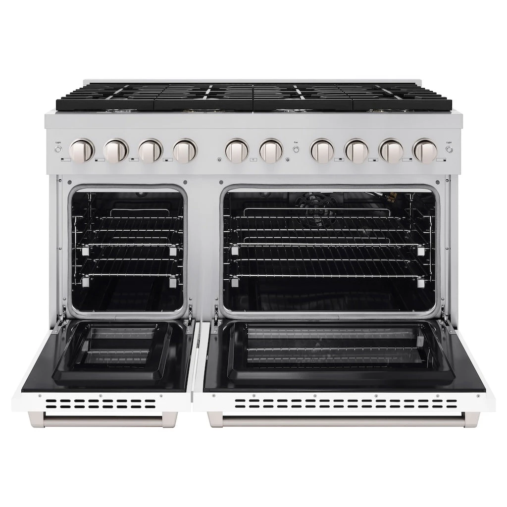 ZLINE 48 In. 6.7 Cu. Ft. Paramount Double Oven Gas Range With 8 Burner Cooktop In Stainless Steel With White Matte Doors (SGR-WM-48)(Zline 48 Paramount Gas Range Stainless Steel White Matte Sgr Wm 48)