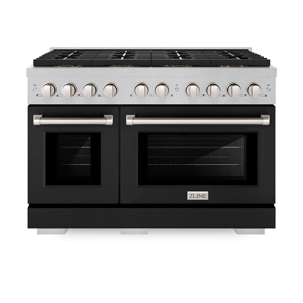 ZLINE 48 In. 6.7 Cu. Ft. Paramount Dual Fuel Range With 8 Burner DuoPro™ Cooktop And Dual Ovens In Satin Stainless Steel With Black Matte Doors (PSDRS-BLM-48)(Zline 48 Paramount Dual Fuel Range Duopro Satin Stainless Steel Black Matte Psdrs Blm 48)
