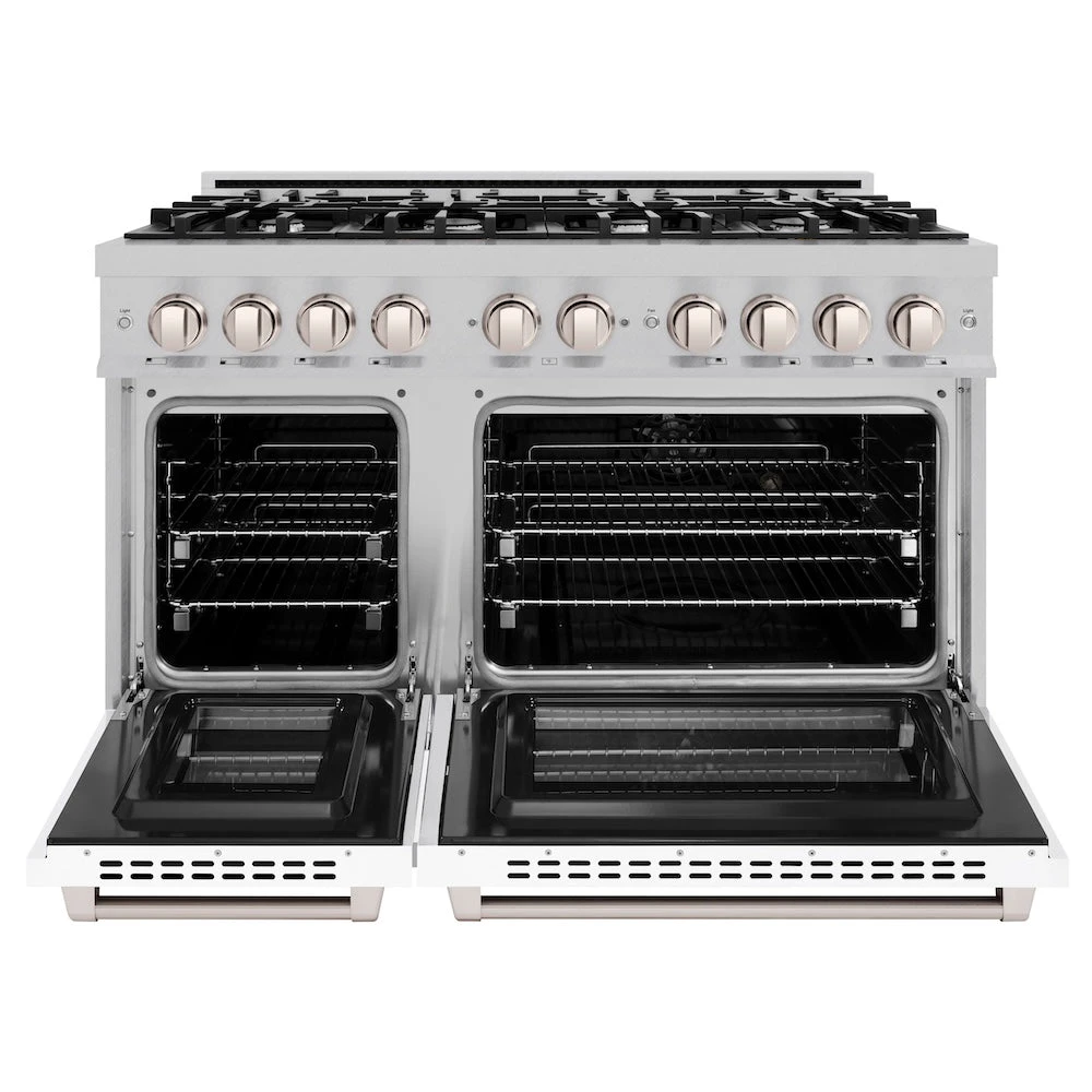 ZLINE 48 In. 6.7 Cu. Ft. Select Double Oven Dual Fuel Range With 8 Burner Gas Cooktop In Satin Stainless Steel With White Matte Doors (HDRS-WM-48)(Zline 48 Select Dual Fuel Range Satin Stainless Steel White Matte Hdrs Wm 48)