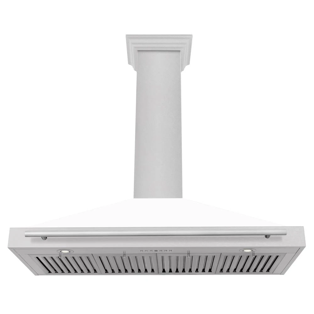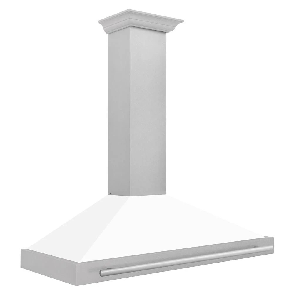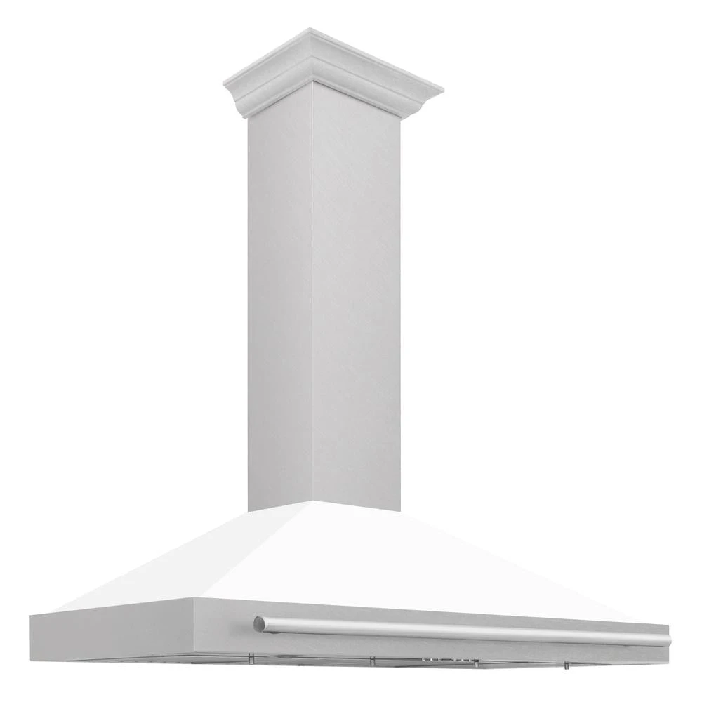 ZLINE 48 In. Convertible Satin Stainless Steel Wall Mount Range Hood With White Matte Shell And Stainless Steel Handle (KB4SNX-WM-48)(Zline 48 Wall Mount Range Hood Satin Stainless Steel White Matte Kb4snx Wm 48)