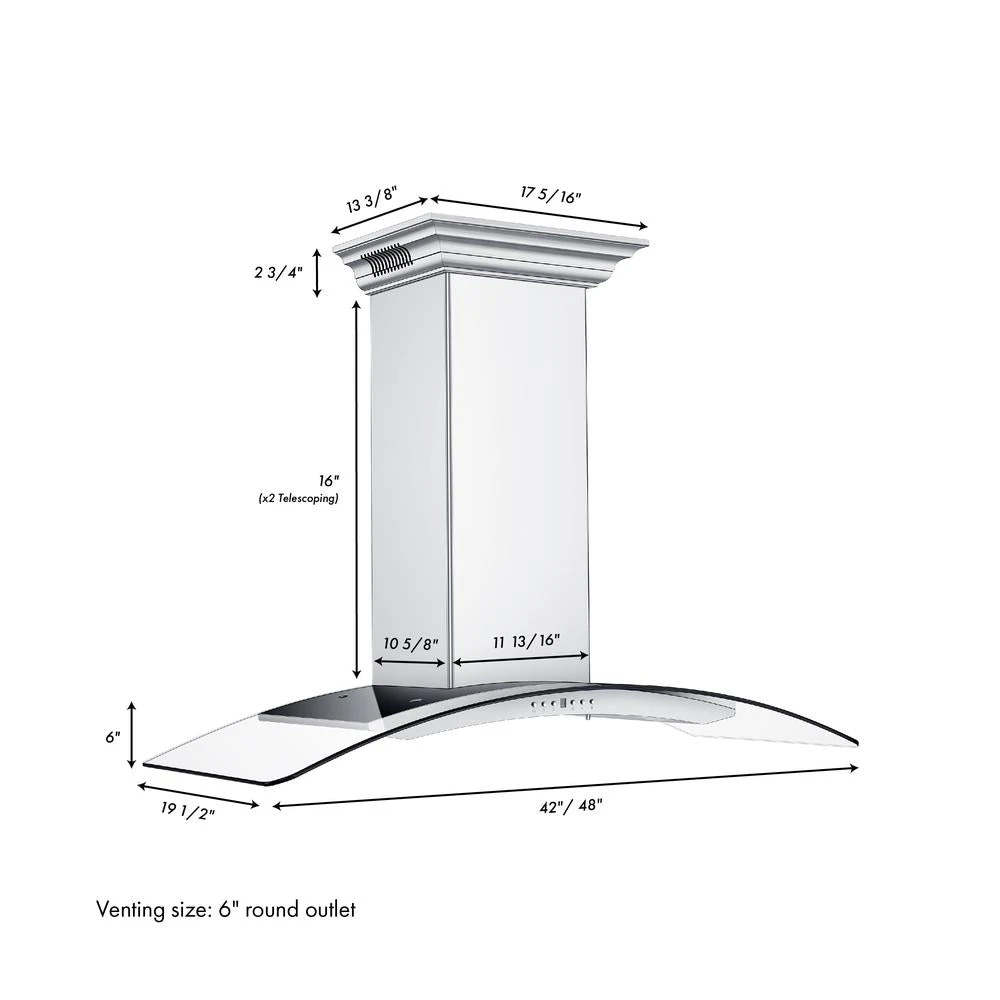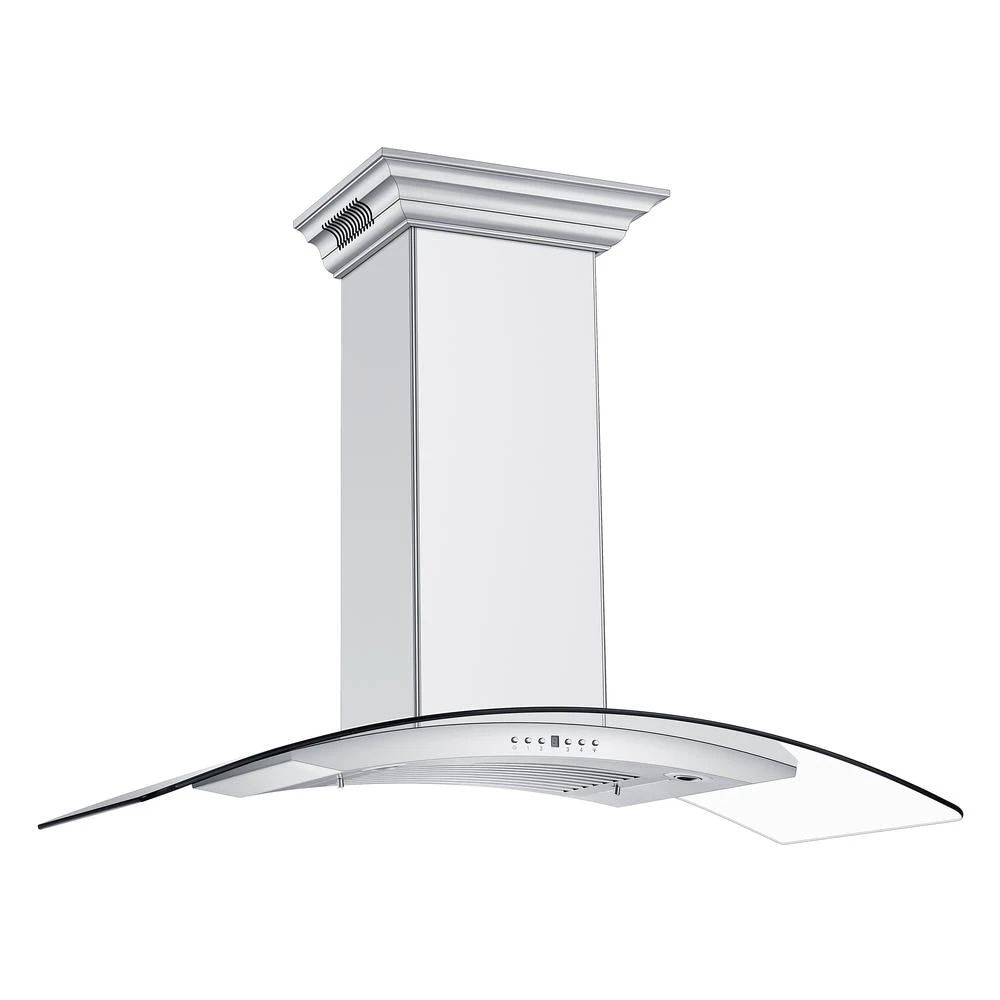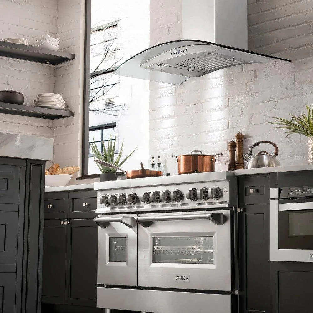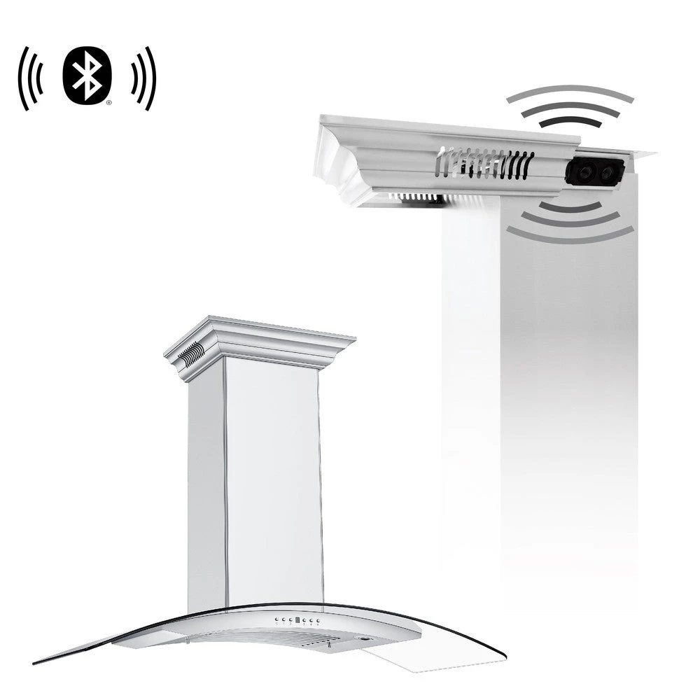 ZLINE 48 In. CrownSound™ Ducted Vent Wall Mount Range Hood In Stainless Steel And Glass With Built-in Bluetooth Speakers (KN4CRN-BT-48)(Zline 48 Wall Mount Range Hood Stainless Steel Crownsound Kn4crn Bt 48)