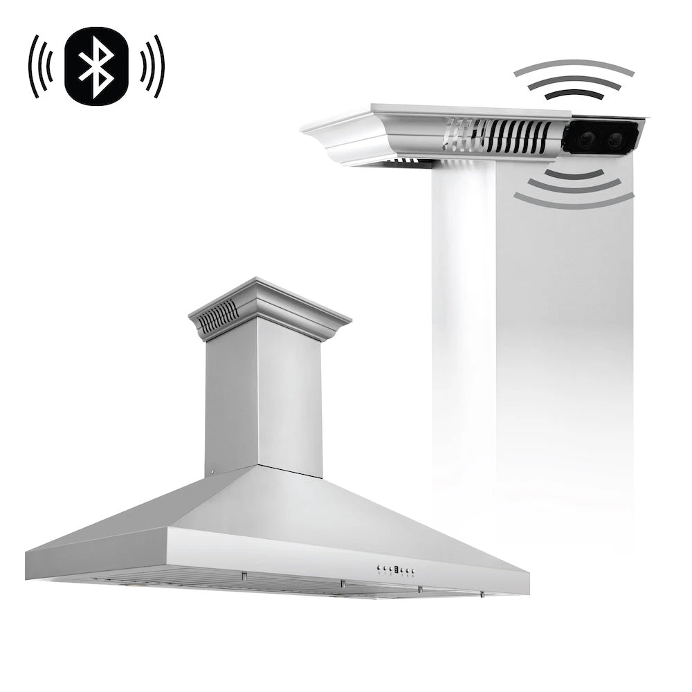 ZLINE 48 In. CrownSound™ Ducted Vent Wall Mount Range Hood In Stainless Steel With Built-in Bluetooth Speakers (KL3CRN-BT-48)(Zline 48 Wall Mount Range Hood Stainless Steel Crownsound Kl3crn Bt 48)
