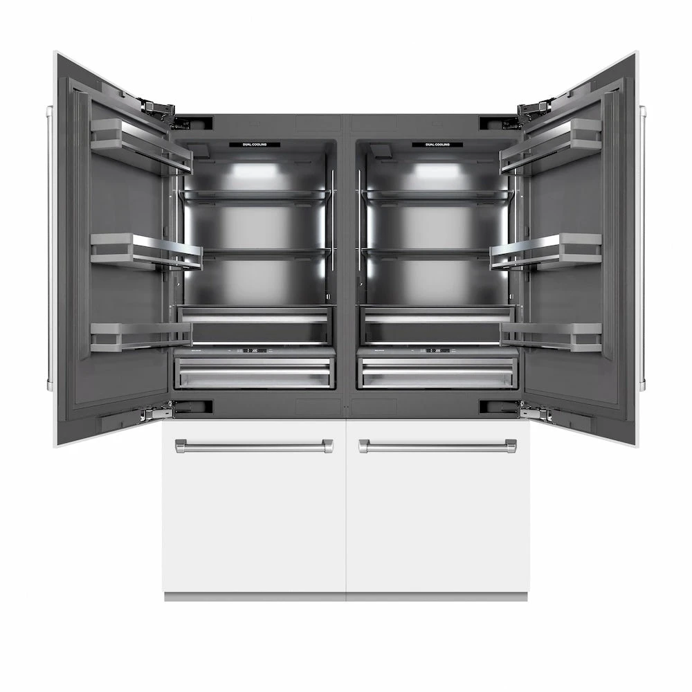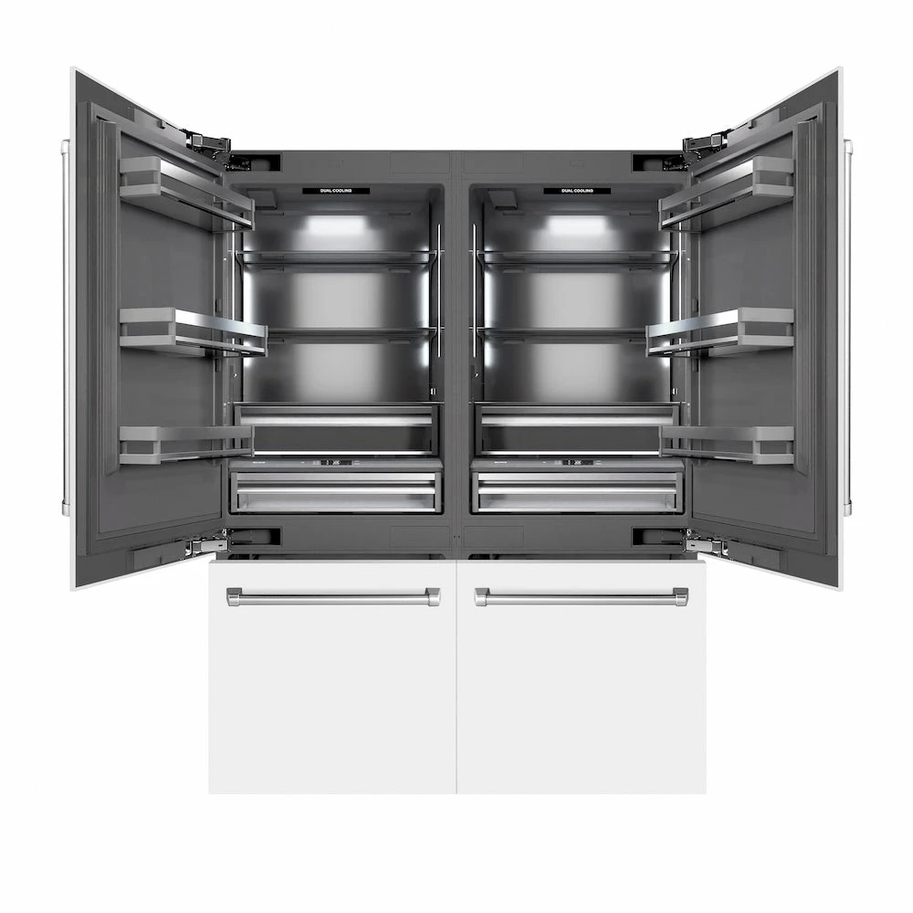 ZLINE 60 In. 32.2 Cu. Ft. French Door Built-In Bottom Freezer Refrigerator With Water Dispensers And Ice Makers In White Matte With Graphite Gray Interior (GRBIV-WM-60)(Zline 60 Built In Refrigerator White Matte Graphite Gray Grbiv Wm 60)