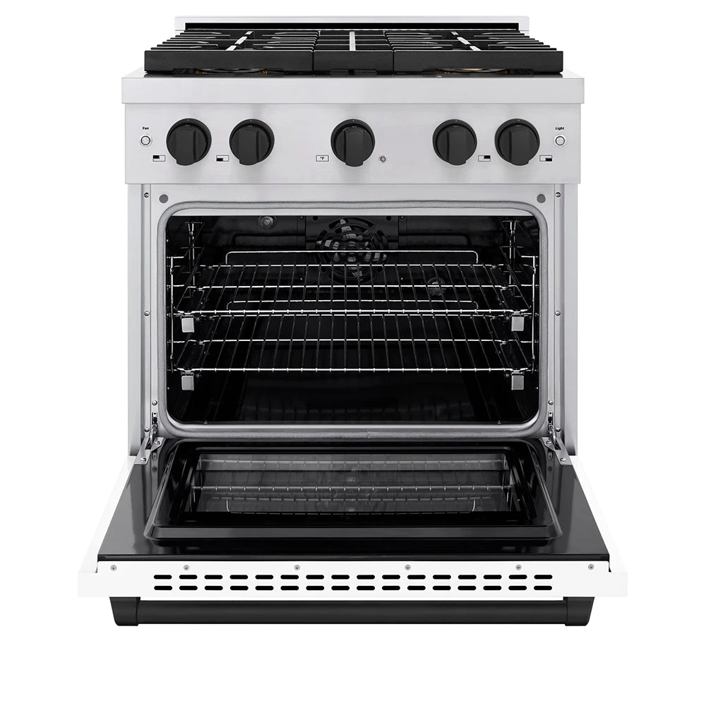 ZLINE Autograph Edition 30 In. 4.2 Cu. Ft. Paramount Dual Fuel Range With 4 Burner DuoPro™ Cooktop And Electric Convection Oven In Stainless Steel With White Matte Door And Matte Black Accents (PSDRZ-WM-30-MB)(Zline Autograph Edition 30 Paramount Dual Fuel Range Duopro Stainless Steel White Matte Matte Black Psdrz Wm 30 Mb)