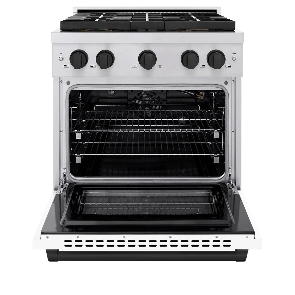 ZLINE Autograph Edition 30 In. 4.2 Cu. Ft. Paramount Gas Range With 4 Burner DuoPro™ Cooktop And Convection Gas Oven In Stainless Steel With White Matte Door And Matte Black Accents (PSGRZ-WM-30-MB)(Zline Autograph Edition 30 Paramount Gas Range Duopro Stainless Steel White Matte Matte Black Psgrz Wm 30 Mb)