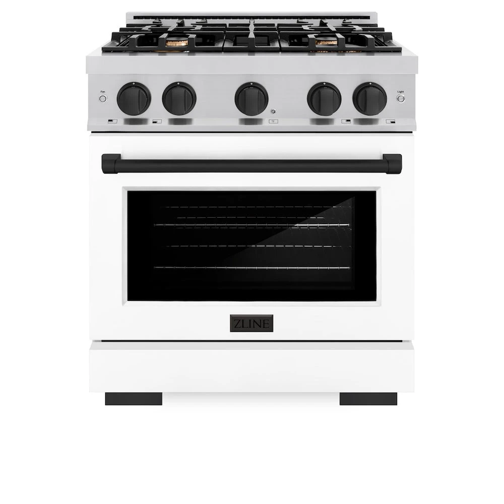 ZLINE Autograph Edition 30 In. 4.2 Cu. Ft. Select Dual Fuel Range With 4 Burner Gas Cooktop And Electric Convection Oven In Stainless Steel With White Matte Door And Matte Black Accents (HDRZ-WM-30-MB)(Zline Autograph Edition 30 Select Dual Fuel Range Stainless Steel White Matte Matte Black Hdrz Wm 30 Mb)
