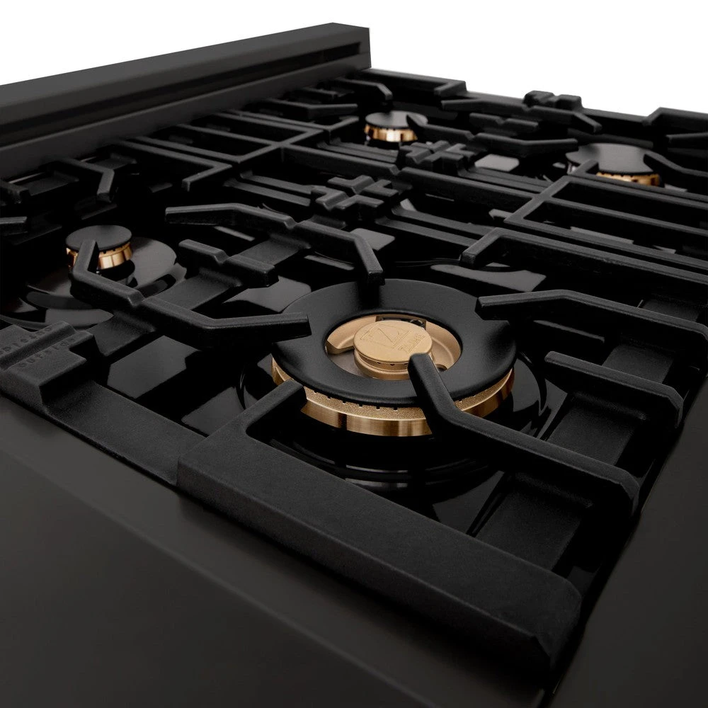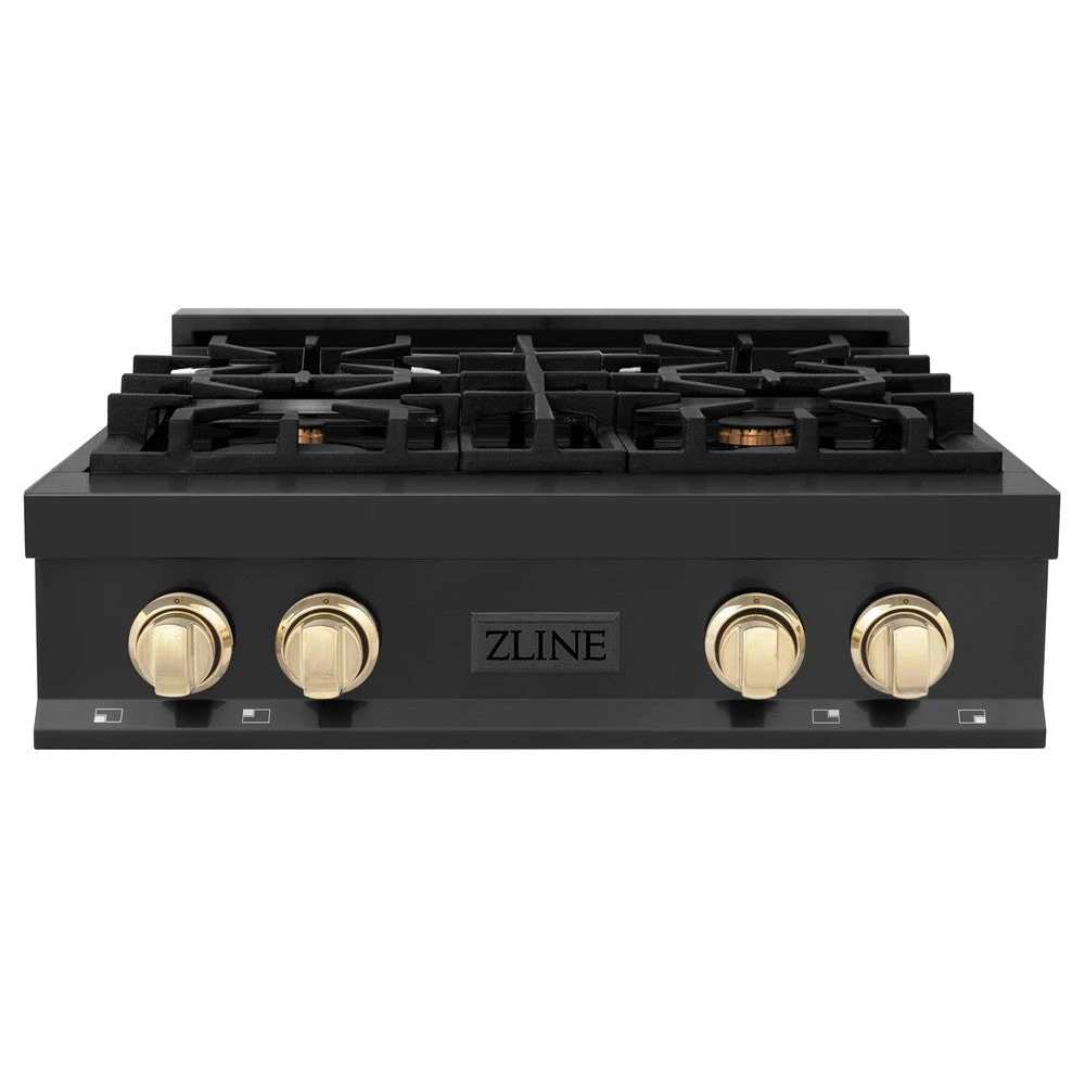 ZLINE Autograph Edition 30 In. Legacy Gas Rangetop With 4 Burners And Porcelain Cooktop In Black Stainless Steel With Polished Gold Accents (RTBZ-30-G)(Zline Autograph Edition 30 Legacy Gas Rangetop Black Stainless Steel Gold Rtbz 30 G)