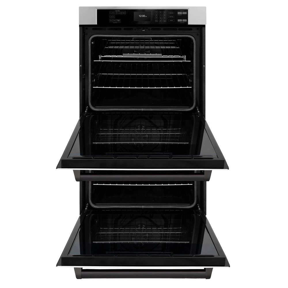 ZLINE Autograph Edition 30 In. Professional True Convection Double Wall Oven With Air Fry And Self Clean In Stainless Steel With White Matte Doors And Matte Black Handles (WADZ-WM-30-MB)(Zline Autograph Edition 30 Double Wall Oven Stainless Steel White Matte Matte Black Wadz Wm 30 Mb)