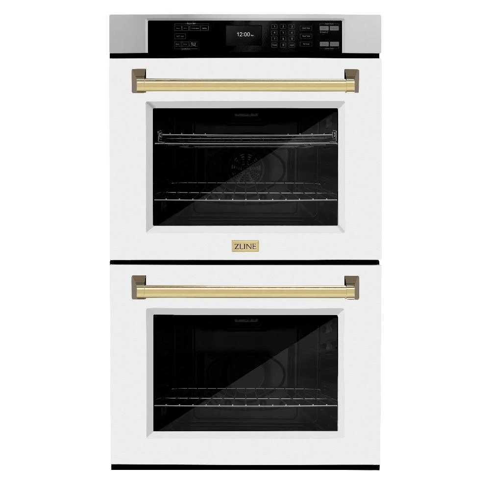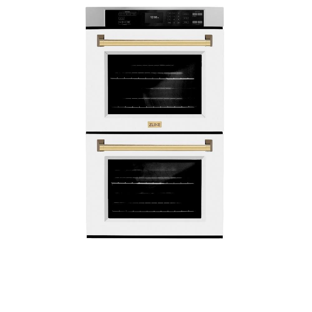ZLINE Autograph Edition 30 In. Professional True Convection Double Wall Oven With Air Fry And Self Clean In Stainless Steel With White Matte Doors And Polished Gold Handles (WADZ-WM-30-G)(Zline Autograph Edition 30 Double Wall Oven Stainless Steel White Matte Polished Gold Wadz Wm 30 G)