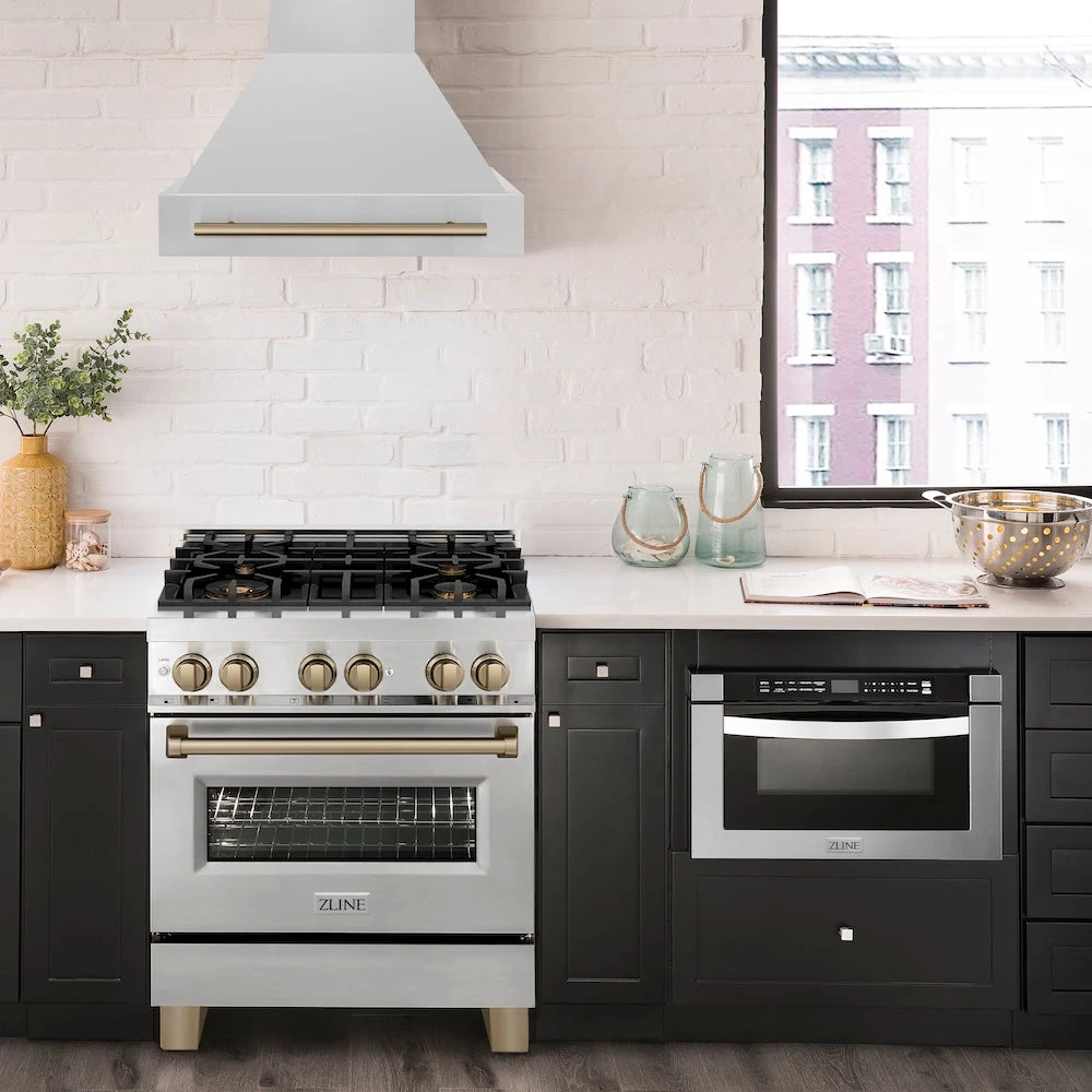 ZLINE Autograph Edition 30 In. Stainless Steel Range Hood With Stainless Steel Shell And Champagne Bronze Handle (8654STZ-30-CB)(Zline Autograph Edition 30 Wall Mount Range Hood Stainless Steel Champagne Bronze 8654stz 30 Cb)