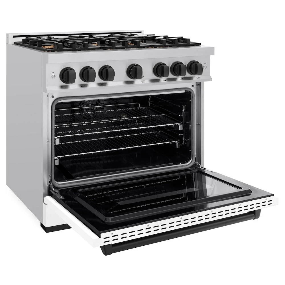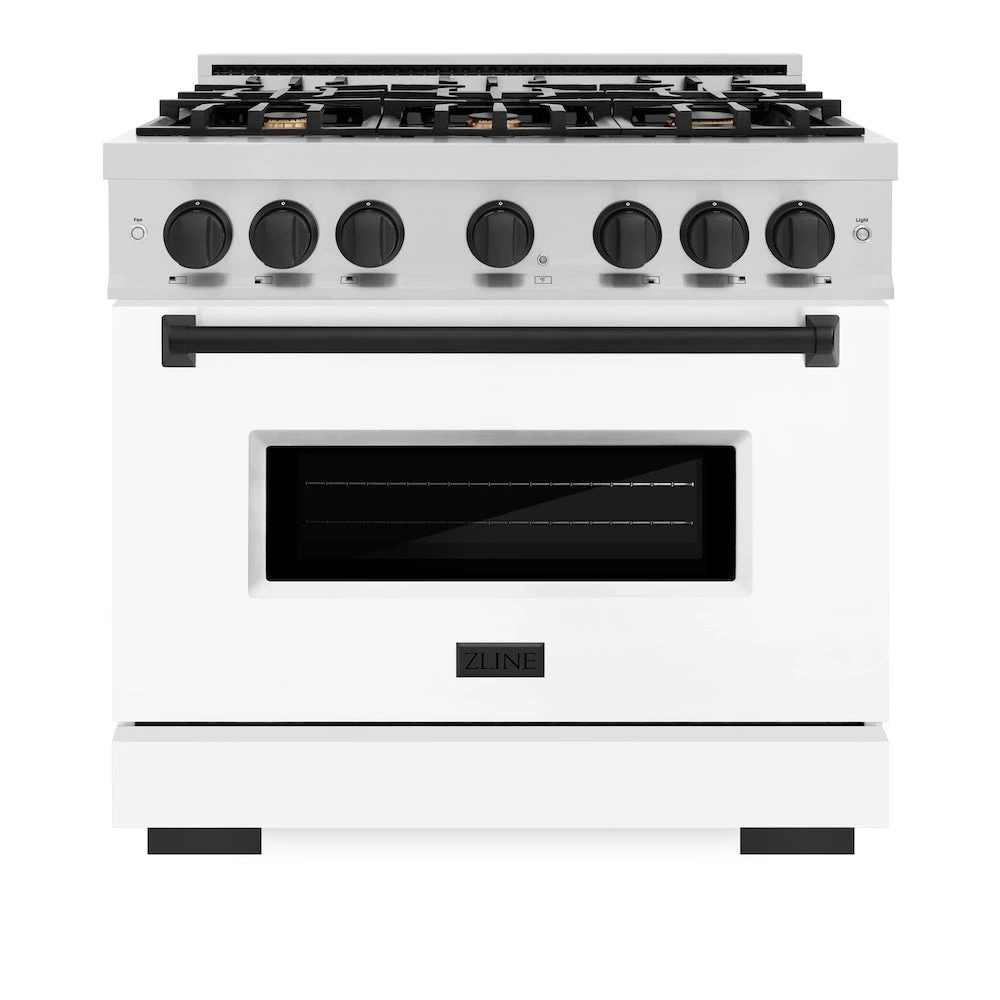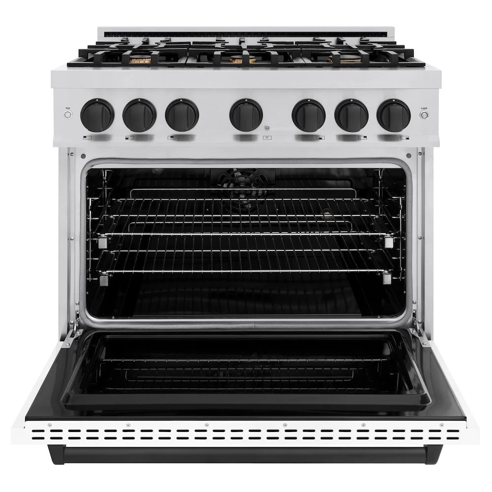 ZLINE Autograph Edition 36 In. 5.2 Cu. Ft. Classic Dual Fuel Range With 6 Burner Gas Cooktop And Electric Convection Oven In Stainless Steel With White Matte Door And Matte Black Accents (CDRZ-WM-36-MB)(Zline Autograph Edition 36 Classic Dual Fuel Range Stainless Steel White Matte Matte Black Cdrz Wm 36 Mb)
