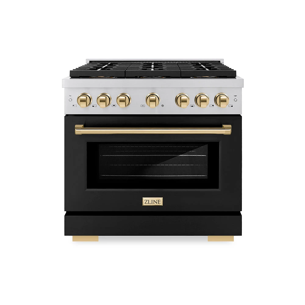 Luxury isn’t meant to be left desired—it’s meant to be attainable. The ZLINE Autograph Edition 36 in. 5.2 cu. ft. Paramount Dual Fuel Range with 6 Burner DuoPro™ Cooktop and Electric Convection Oven with Black Matte Door and Polished Gold Accents (PSDRZ-BLM-36-G) features a high-powered gas cooktop with 6 hand-crafted Italian dual-ring brass burners and a versatile electric convection oven allowing you to master every meal. Double your cooking power on every burner with a DuoPro™ Cooktop that delivers ultimate flame control flexibility and unprecedented culinary confidence.