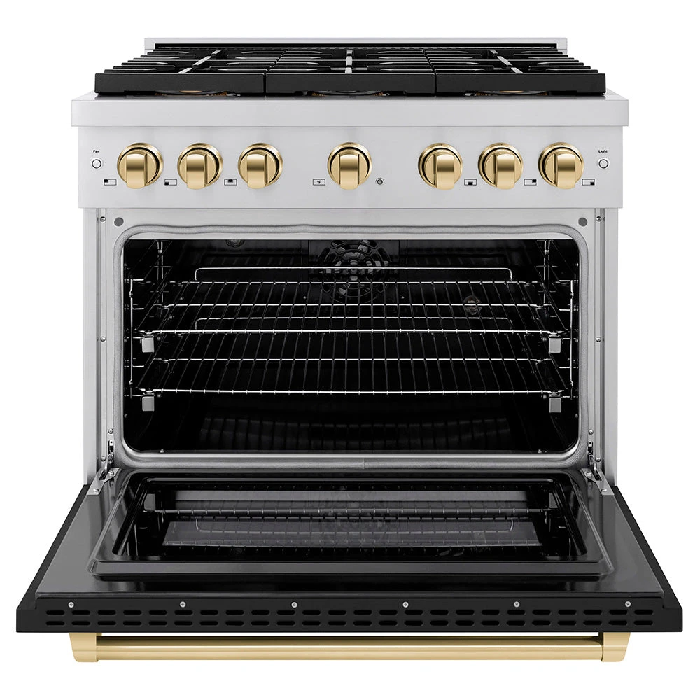 ZLINE Autograph Edition 36 In. 5.2 Cu. Ft. Paramount Dual Fuel Range With 6 Burner DuoPro™ Cooktop And Electric Convection Oven With Black Matte Door And Polished Gold Accents (PSDRZ-BLM-36-G)(Zline Autograph Edition 36 Paramount Dual Fuel Range Duopro Stainless Steel Black Matte Polished Gold Psdrz Blm 36 G)