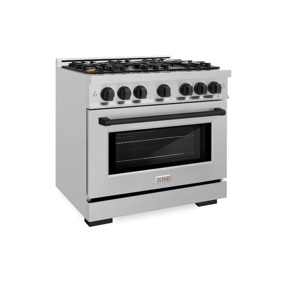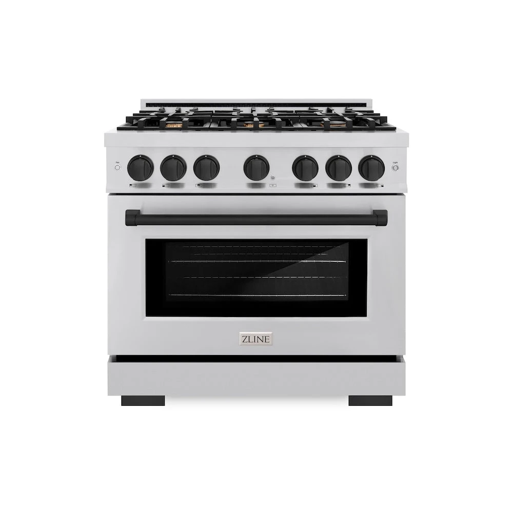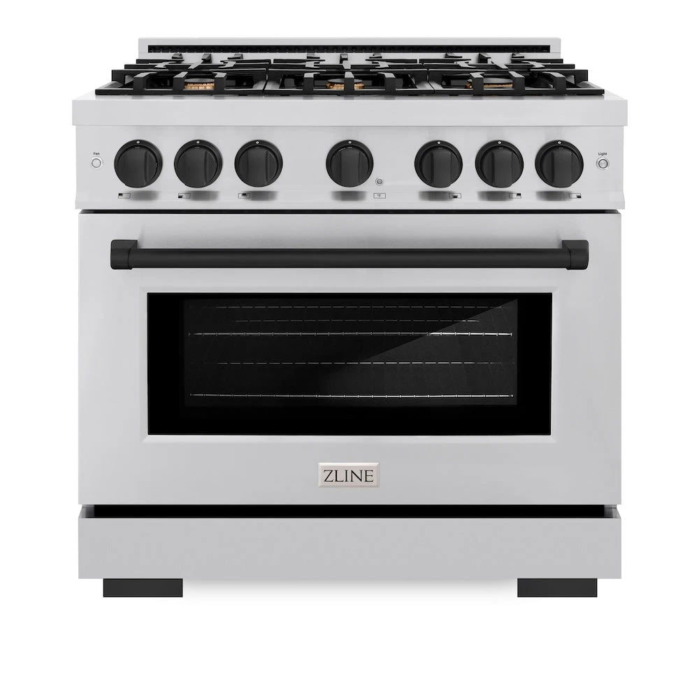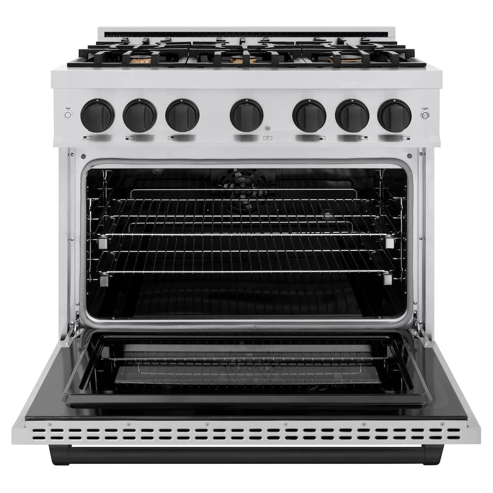ZLINE Autograph Edition 36 In. 5.2 Cu. Ft. Select Dual Fuel Range With 6 Burner Gas Cooktop And Electric Convection Oven In Stainless Steel With Matte Black Accents (HDRZ-36-MB)(Zline Autograph Edition 36 Select Dual Fuel Range Stainless Steel Matte Black Hdrz 36 Mb)
