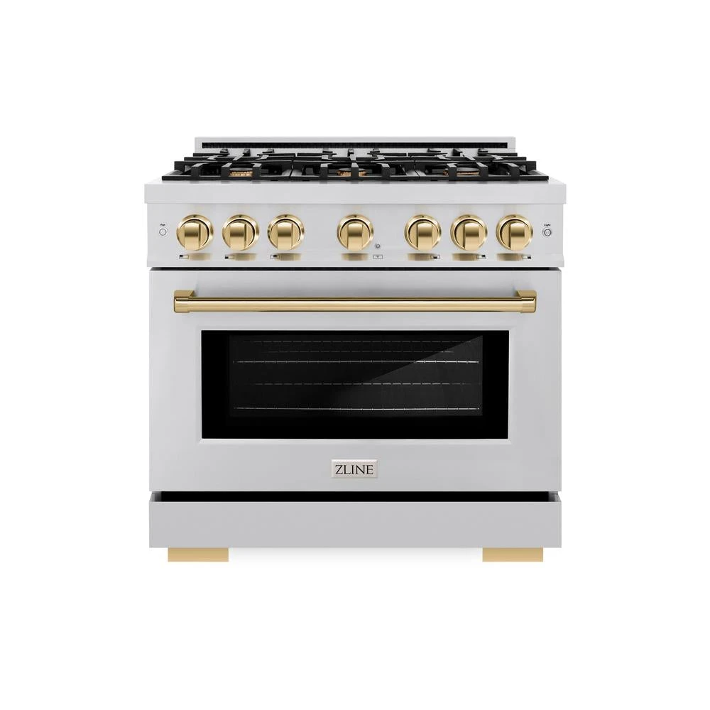 ZLINE Autograph Edition 36 In. 5.2 Cu. Ft. Select Dual Fuel Range With 6 Burner Gas Cooktop And Electric Convection Oven In Stainless Steel With Polished Gold Accents (HDRZ-36-G)(Zline Autograph Edition 36 Select Dual Fuel Range Stainless Steel Polished Gold Hdrz 36 G)