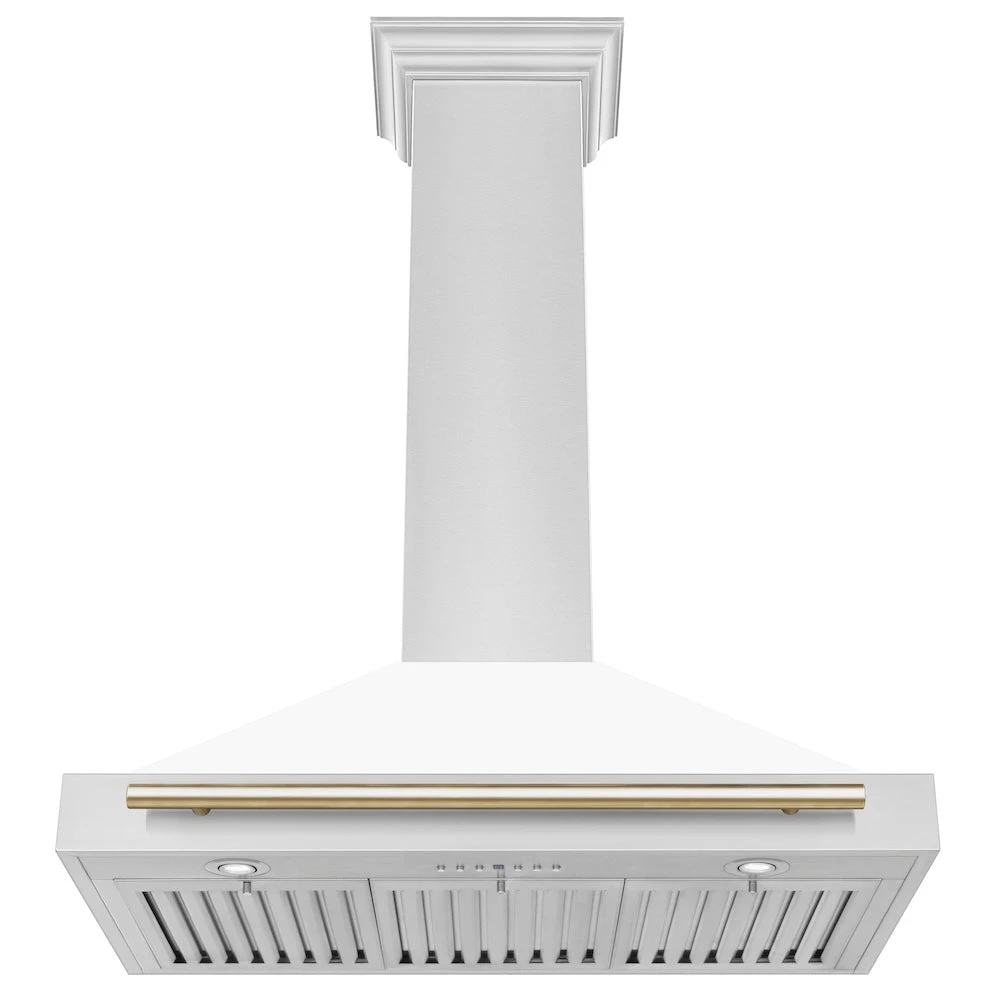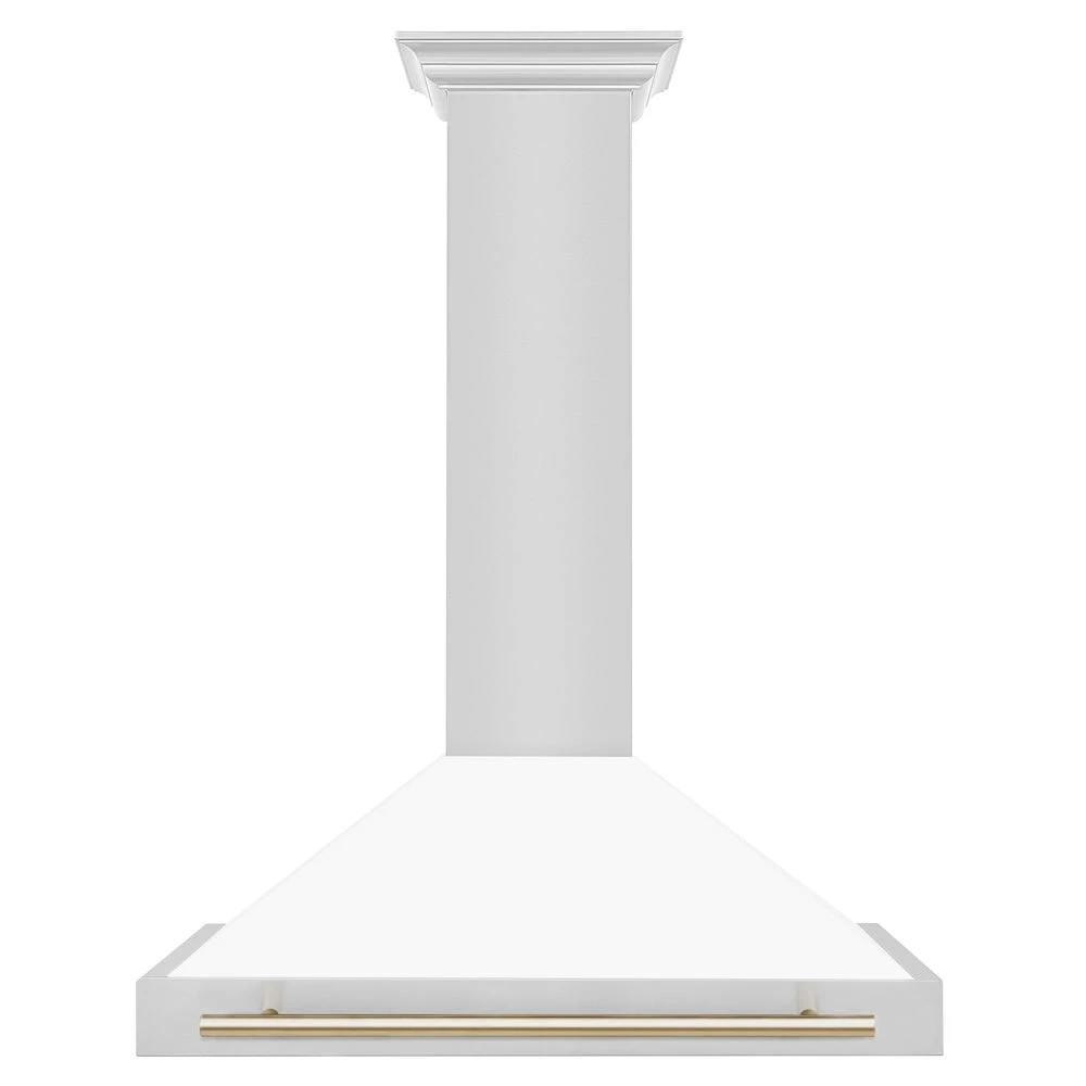 ZLINE Autograph Edition 36 In. Convertible Stainless Steel Range Hood With White Matte Shell And Polished Gold Accents (KB4STZ-WM36-G)(Zline Autograph Edition 36 Wall Mount Range Hood Stainless Steel White Matte Polished Gold Kb4stz Wm36 G)