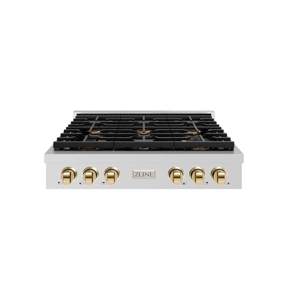 ZLINE Autograph Edition 36 In. Paramount Gas Rangetop With 6 Burners And Porcelain Cooktop In Stainless Steel With Polished Gold Accents (SRTZ-36-G)(Zline Autograph Edition 36 Paramount Gas Rangetop Stainless Steel Polished Gold Srtz 36 G)